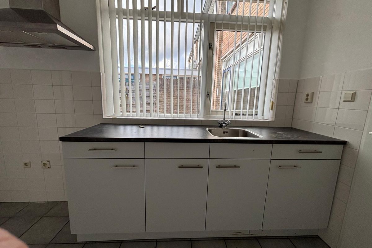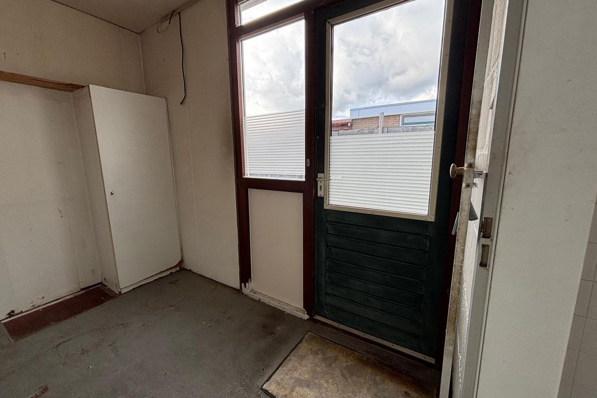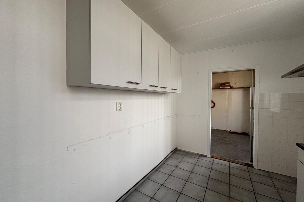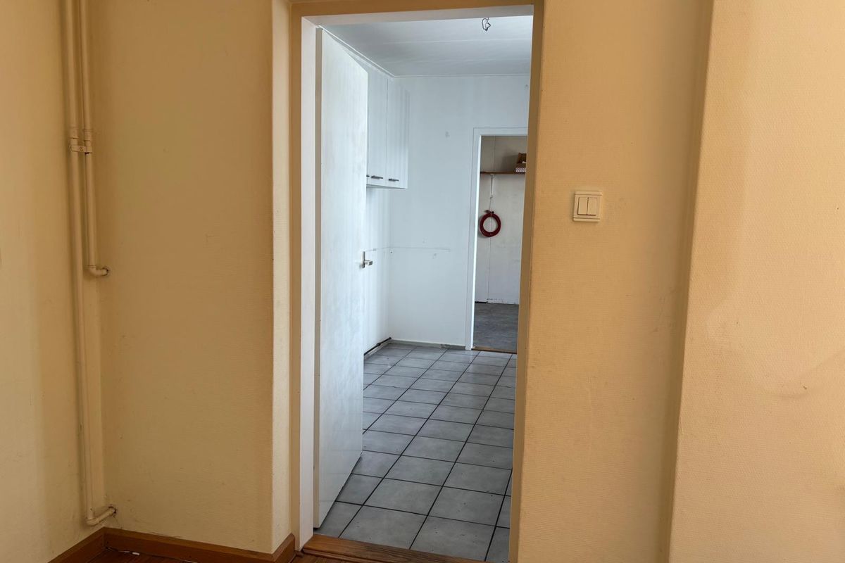 U betreedt de woning via de entree op de begane grond. Hier vindt u de deels betegelde toiletruimte, de meterkast en de vaste trap naar de eerste verdieping. Vanuit de hal stapt u de lichte woonkamer binnen, die is afgewerkt met een laminaatvloer. Aansluitend treft u de dichte keuken met vloertegels. Achter de keuken bevindt zich de bijkeuken, waar de wasmachine-aansluiting is gesitueerd en vanwaar u direct toegang heeft tot de achtertuin, die is gelegen op het zuidoosten.