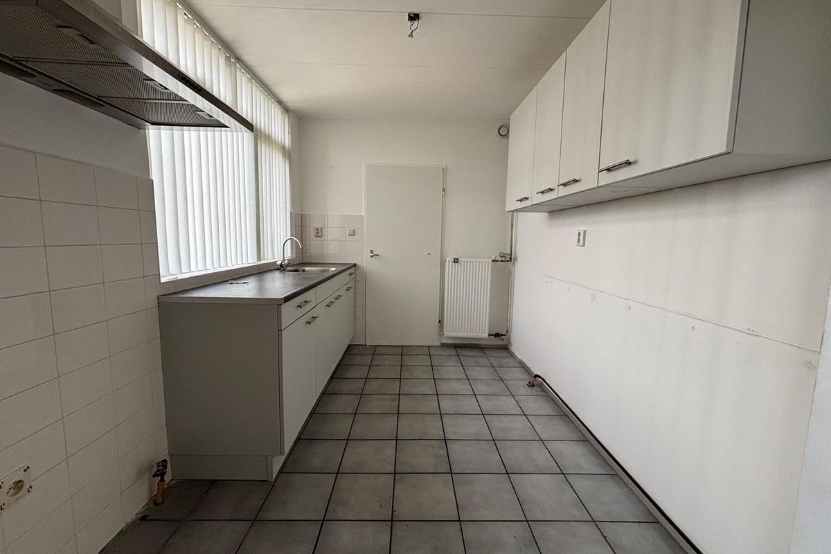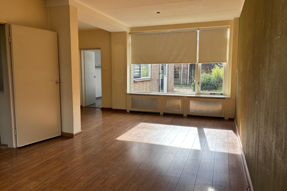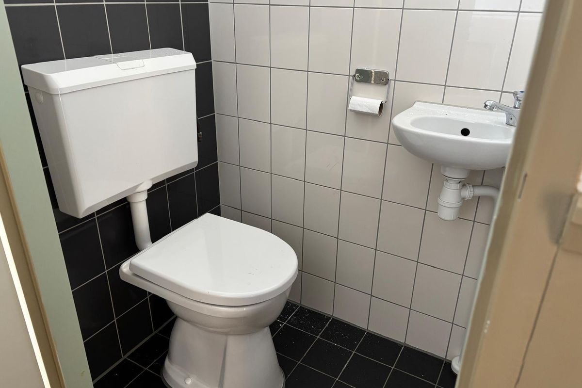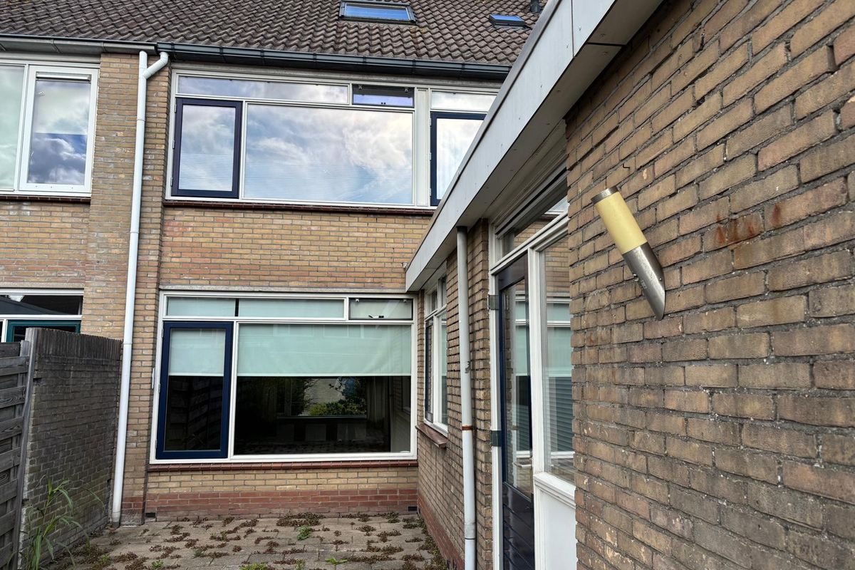 U betreedt de woning via de entree op de begane grond. Hier vindt u de deels betegelde toiletruimte, de meterkast en de vaste trap naar de eerste verdieping. Vanuit de hal stapt u de lichte woonkamer binnen, die is afgewerkt met een laminaatvloer. Aansluitend treft u de dichte keuken met vloertegels. Achter de keuken bevindt zich de bijkeuken, waar de wasmachine-aansluiting is gesitueerd en vanwaar u direct toegang heeft tot de achtertuin, die is gelegen op het zuidoosten.