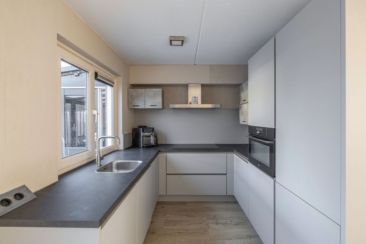 Vanuit de hal stap je de woonkamer in: ruim, open en dankzij de zijramen extra licht. Aan de voorzijde kijk je uit over de straat, terwijl aan de achterzijde de eetkamer de verbindende schakel vormt tussen wonen en koken. De keuken (2021) sluit daar naadloos op aan: modern, compleet en met uitzicht op de tuin. De opstelling biedt volop werkruimte en inbouwapparatuur, en vormt samen met de eetkamer een plek waar het gezinsleven zich afspeelt, van een snelle boterham in de ochtend tot uitgebreid tafelen, of huiswerk aan de eettafel. De dubbele openslaande deuren vergroten de ruimte nog eens extra.