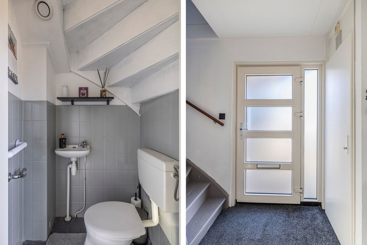 Je komt thuis op een plek waar het meteen prettig voelt. De oprit biedt ruimte voor twee auto’s, de hal verwelkomt met een vernieuwde trap en het toilet. Jas aan de kapstok, schoenen uit, hier begint thuiskomen.