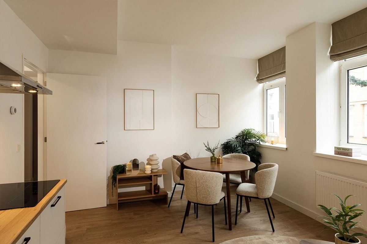 TE HUUR - nieuw gerenoveerd gemeubileerd en gestoffeerd appartement gelegen aan de Schoenmakersstraat 13B op de 1e verdieping met 2 slaapkamers (56 m2) in het “oude” centrum van Roermond. Huurprijs € 1.028,- excl. GWE en servicekosten