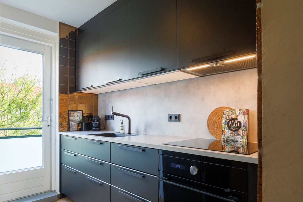 Entree maisonnette. Ruime hal met meterkast en toegang tot alle vertrekken. De woonkamer is royaal van opzet, heeft 2 inbouwkasten en openslaande deuren naar het zonnige balkon op het zuidwesten, de perfecte plek om te genieten van de middag- en avondzon. Aan de achterzijde grenst de keuken aan het tweede balkon, met uitzicht op de groene, gezamenlijke binnentuin.