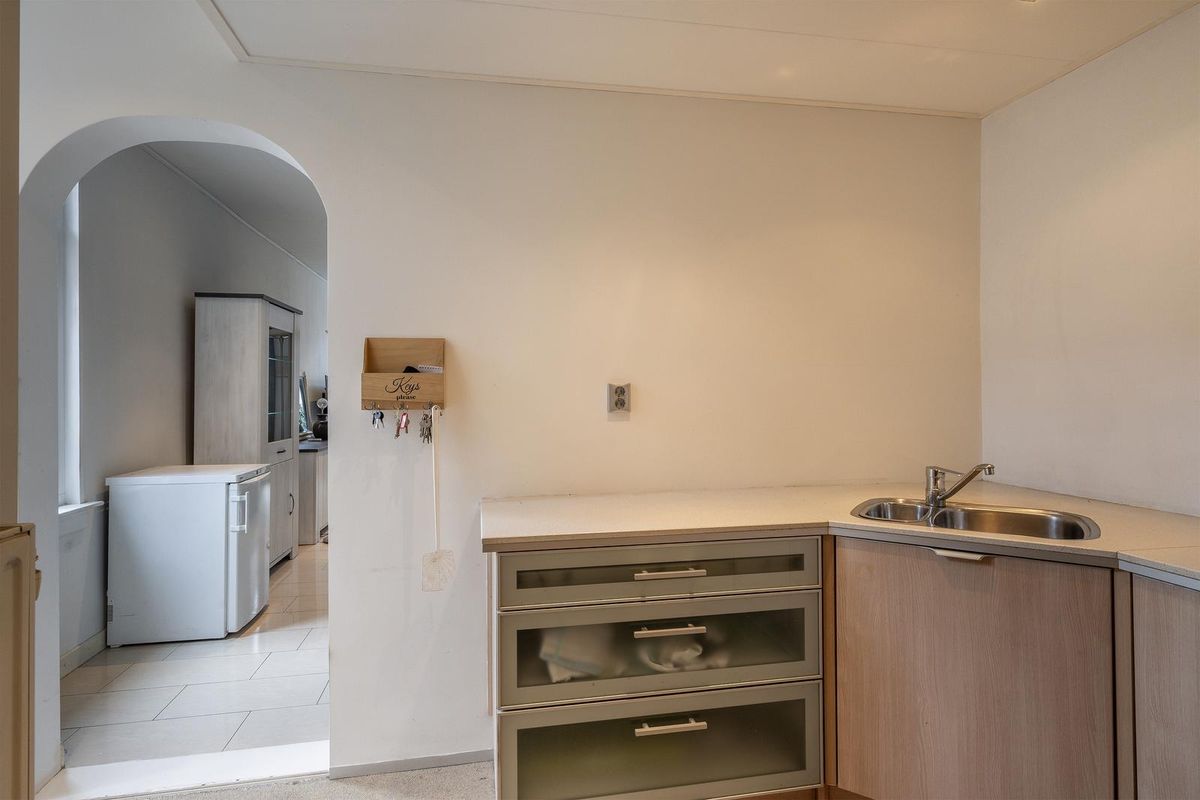 De royale woonkamer is sfeervol afgewerkt en voorzien van inbouwspots, elektrische rolluiken en een radiator voor extra comfort. Via de woonkamer heb je tevens toegang tot de keuken en bevindt zich de trapopgang naar de eerste verdieping.