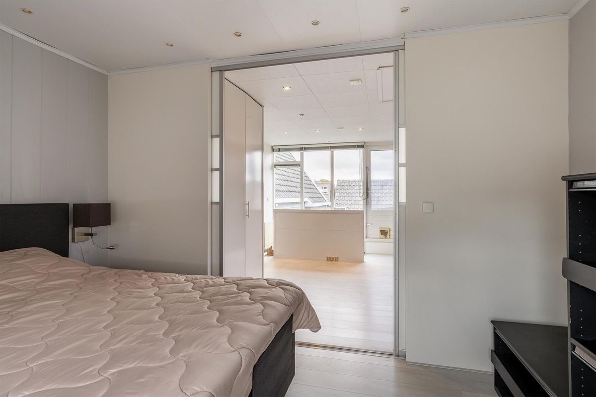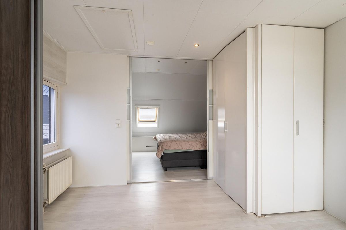 Royale overloop met vaste kast, schuifkastenwand, CV-opstelling (Nefit, 2004) en de mogelijkheid voor een 2e slaapkamer. Vanaf de overloop is er toegang tot de slaapkamer, het ruime en zonnige dakterras en de bergzolder, die bereikbaar is via een vlizotrap.