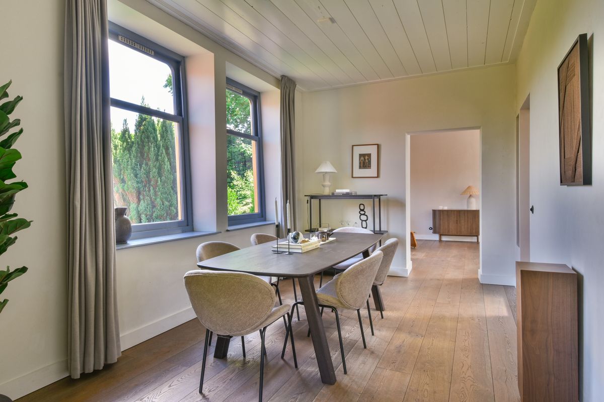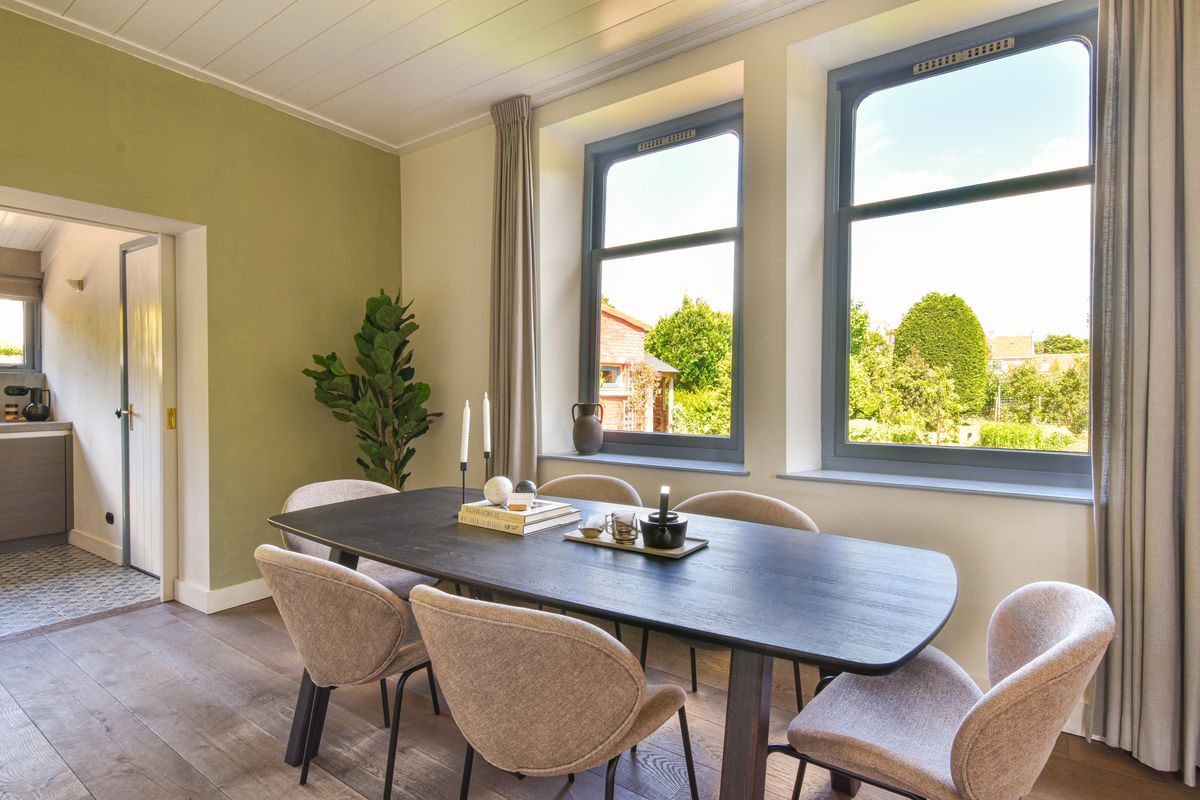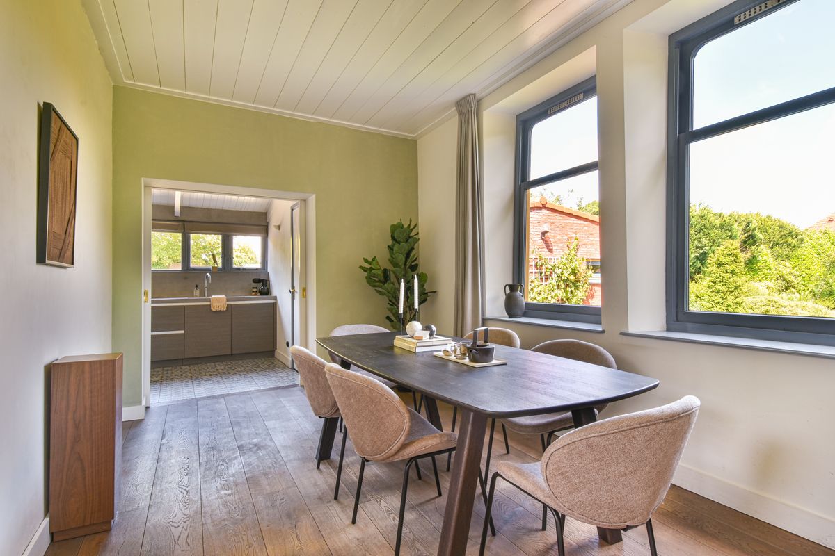 Eenmaal binnen ervaart u hoe karakter en comfort hand in hand gaan. De hal biedt toegang tot de eetkamer, het hart van het huis. Grote ramen zorgen voor een overvloed aan natuurlijk licht en bieden uitzicht op de prachtige groene tuin. De zachte wandkleuren creëren een rustige en uitnodigende sfeer.