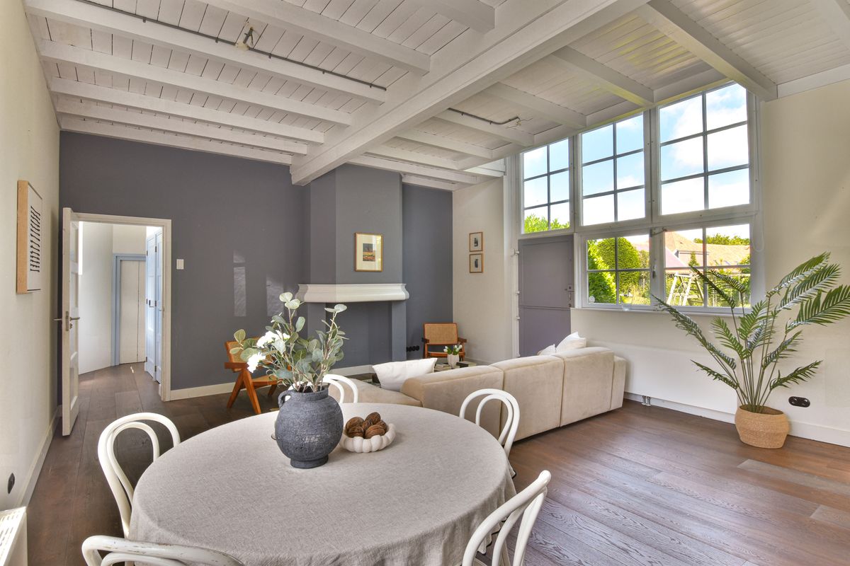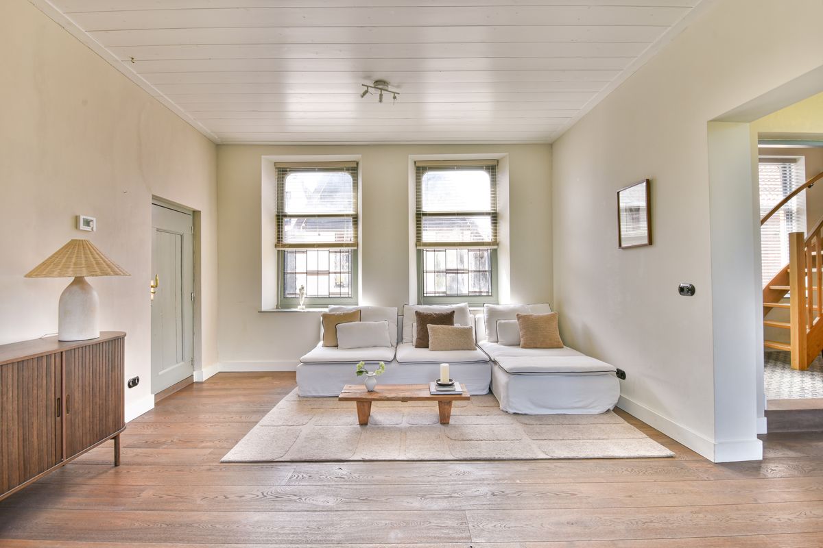 Bij binnenkomst valt direct de authentieke sfeer op. De woning telt in totaal acht kamers, waarvan meerdere kamers als slaapkamer, werkruimte of atelier kunnen worden ingericht.