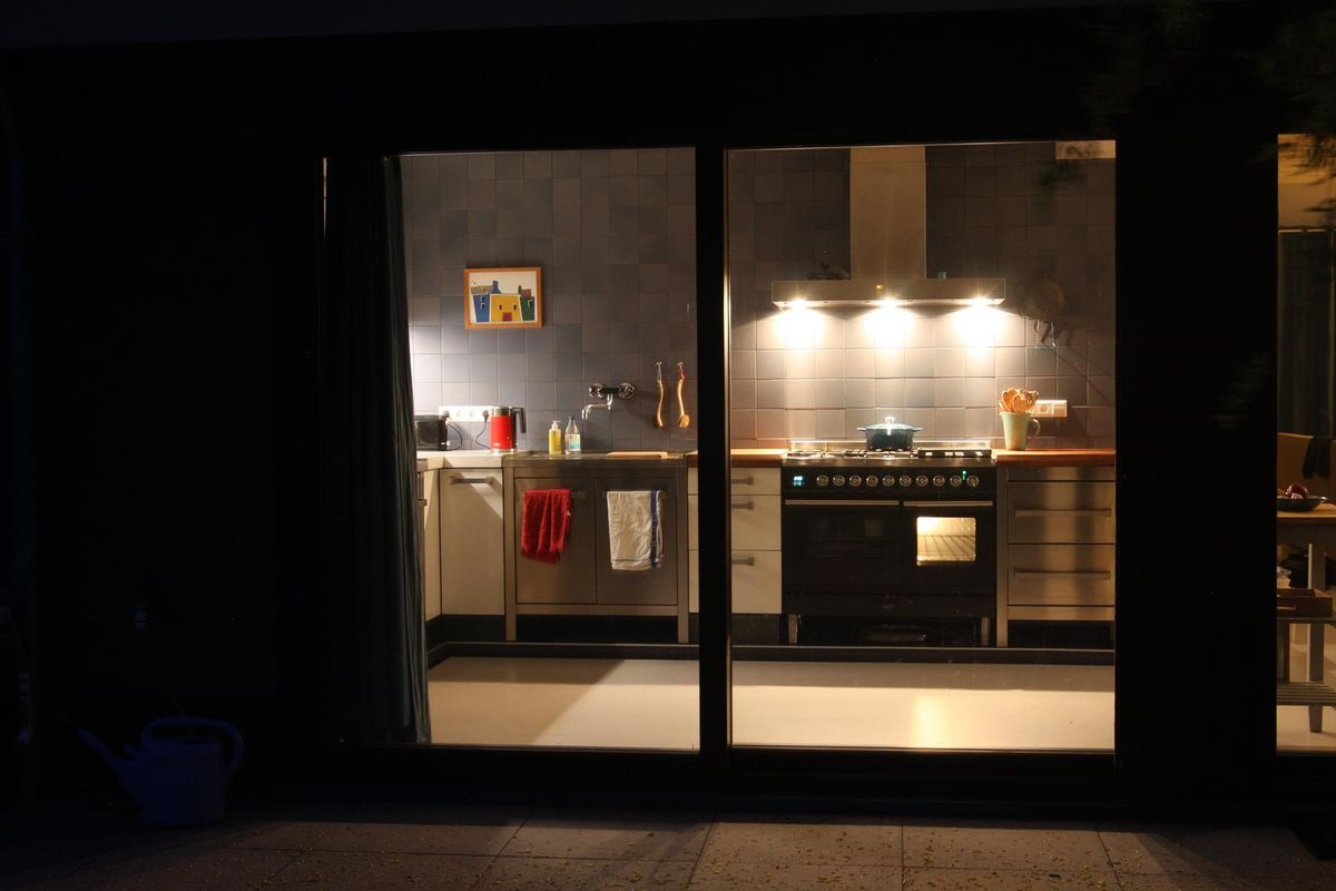 Binnen kom je in een ruime, lichte woonkamer met een open keuken. De zes meter brede schuifpui zorgt voor een levend groen schilderij. De woonkamer biedt genoeg ruimte voor een royale zithoek en een grote eettafel waar je met familie en vrienden gezellig kan tafelen. De keuken sluit hier naadloos op aan en is praktisch ingericht, met voldoende werk- en bergruimte.