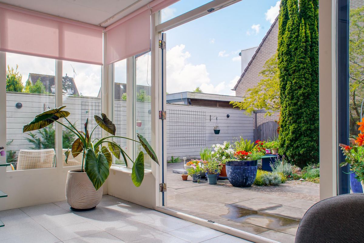 U bereikt de achtertuin door de schuifpui vanuit de woonkamer of door de openslaande deuren vanuit de tuinkamer, tevens is de garage via de tuin te bereiken. De tuin ligt op het noordwesten en biedt veel privacy door de omliggende schuttingen. De tuin is voorzien van tegels, verschillende terrassen en gevarieerde beplanting. Hier kunt u naar hartenlust tuinieren om vervolgens te genieten van de rust met een bakje koffie of thee. Via de zijkant van de woning kunt u gemakkelijk buitenom lopen naar de voortuin. Hier heeft u de mogelijkheid om te parkeren op eigen terrein of uiteraard in uw eigen garage die voorzien is van een elektrische roldeur.