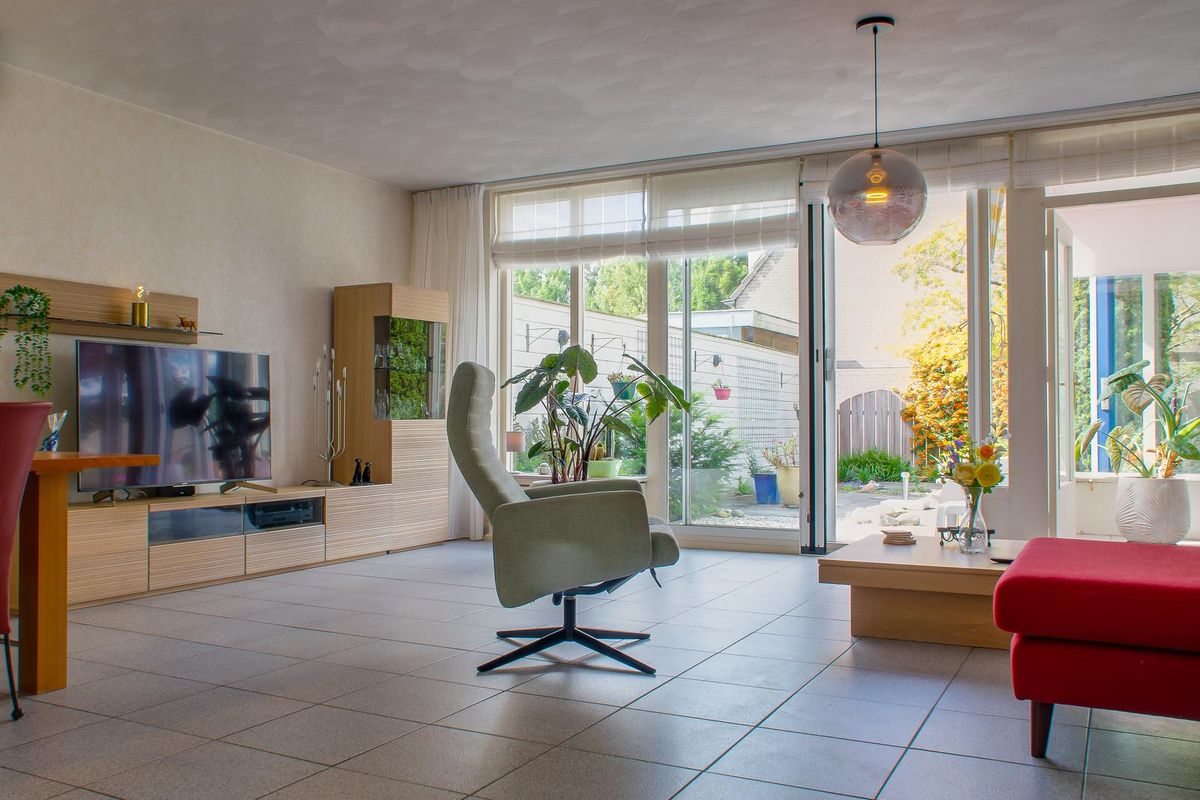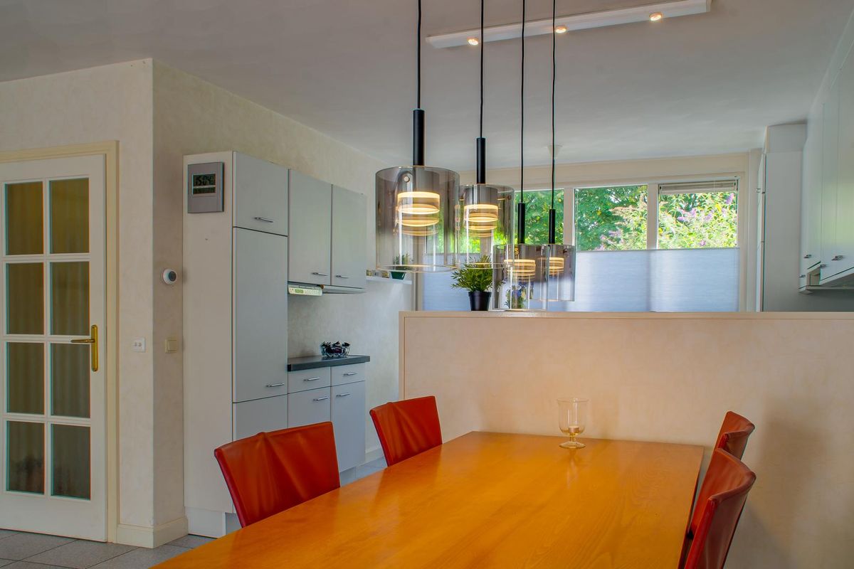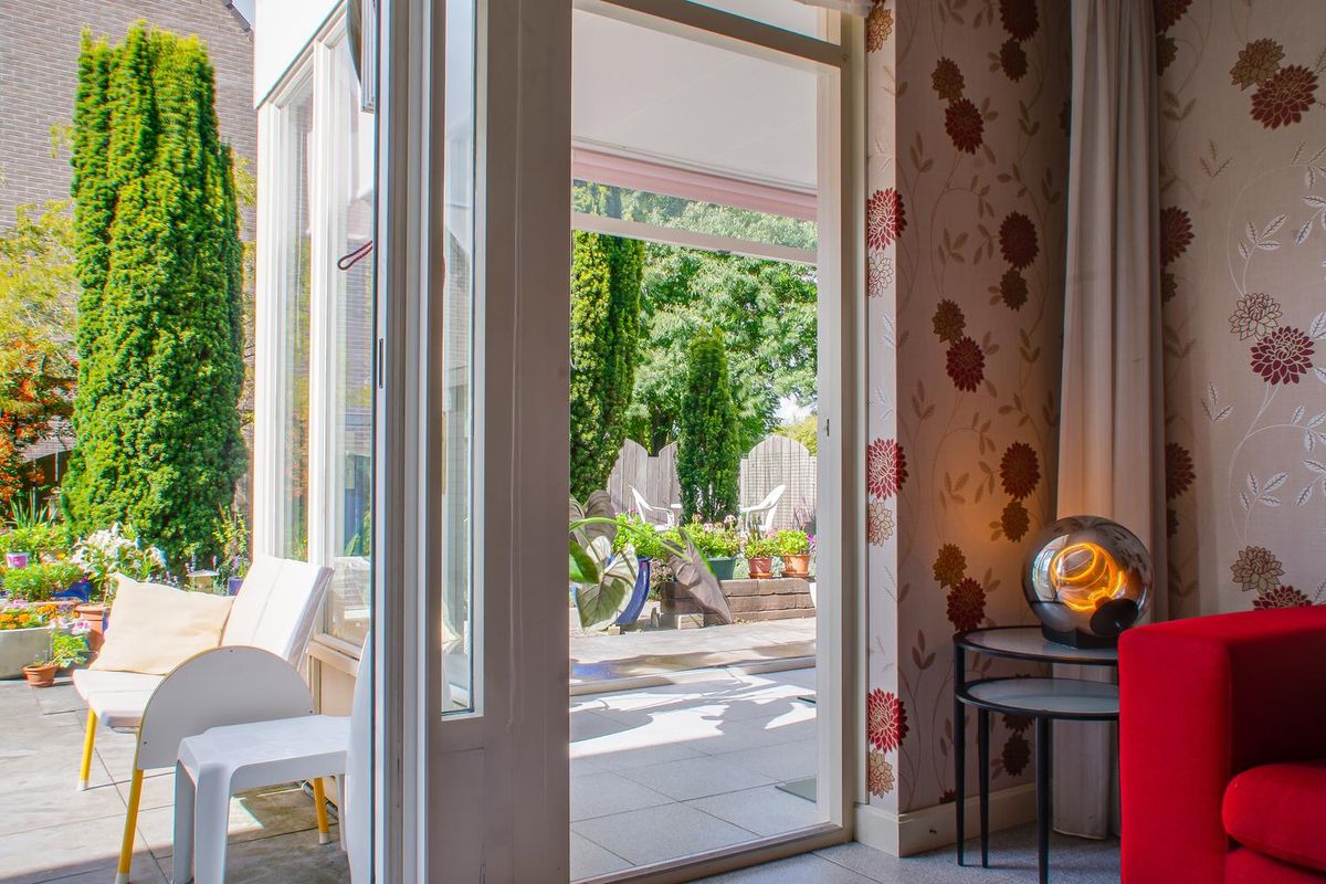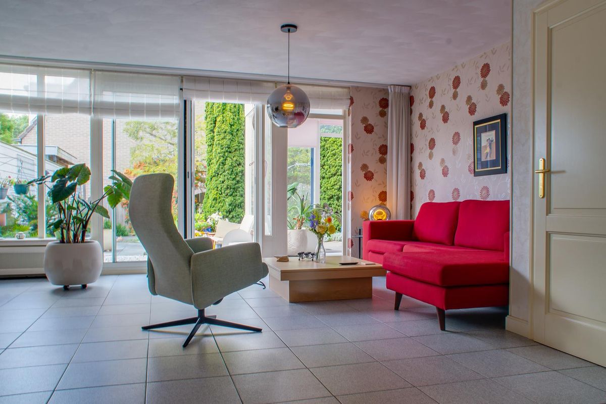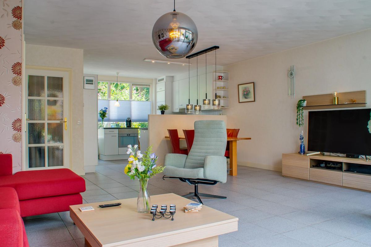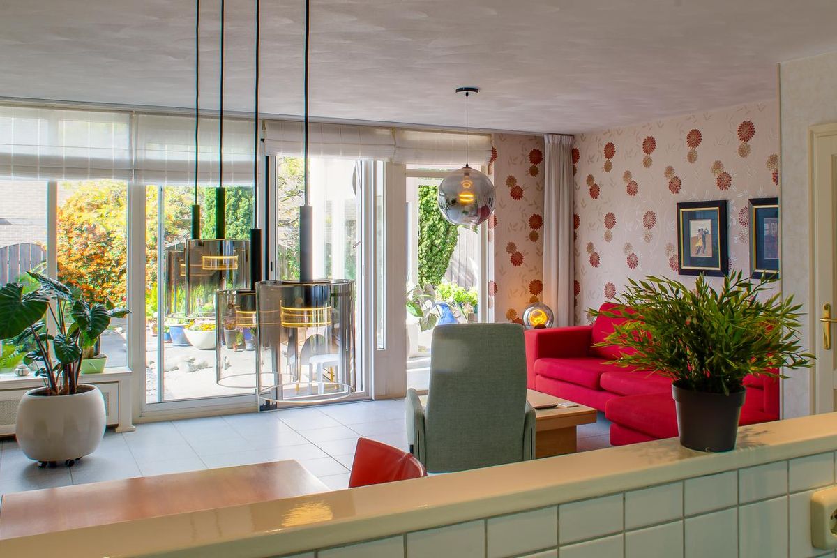 Vanuit de hal loopt u door naar de ruime tuingerichte woonkamer welke voorzien is van een plavuizen vloer met vloerverwarming als bijverwarming en praktische bergkast. De open keuken beschikt over diverse inbouwapparatuur en heeft een vrij uitzicht naar de straat. Terwijl u kookt, schuiven familie of vrienden gezellig aan bij de eettafel. Vanuit de woonkamer heeft u ook toegang naar de sfeervolle tuinkamer.