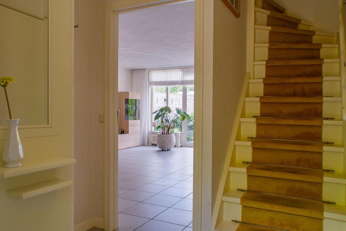 Tevens vindt u hier de trap naar de eerste verdieping en een deur naar de naastgelegen hobbyruimte, atelier en garage.