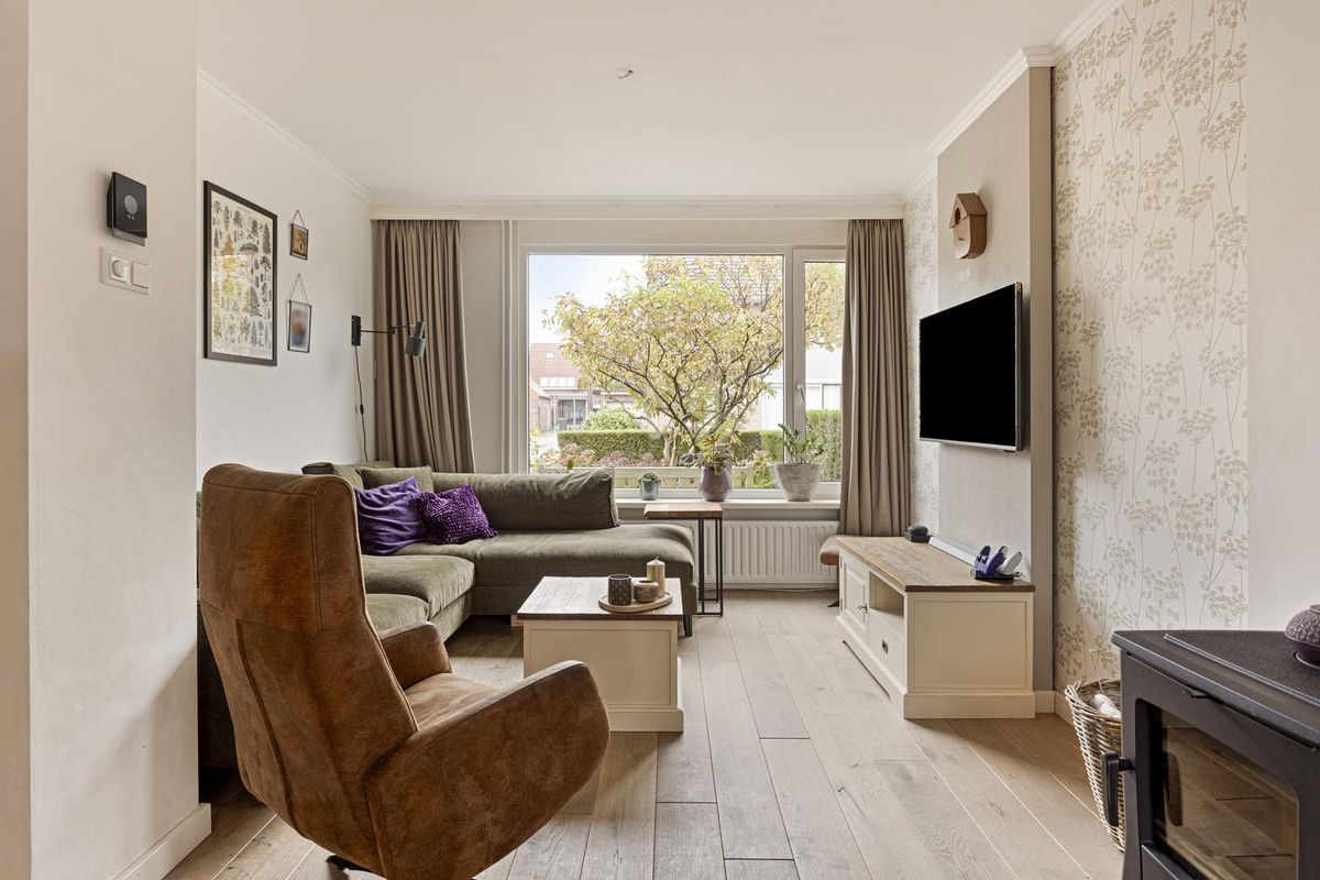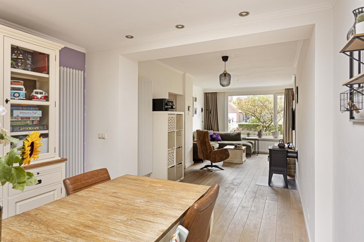De houten vloer in de hal, woonkamer en keuken geeft de ruimtes een warme uitstraling en zorgt voor een mooi geheel.