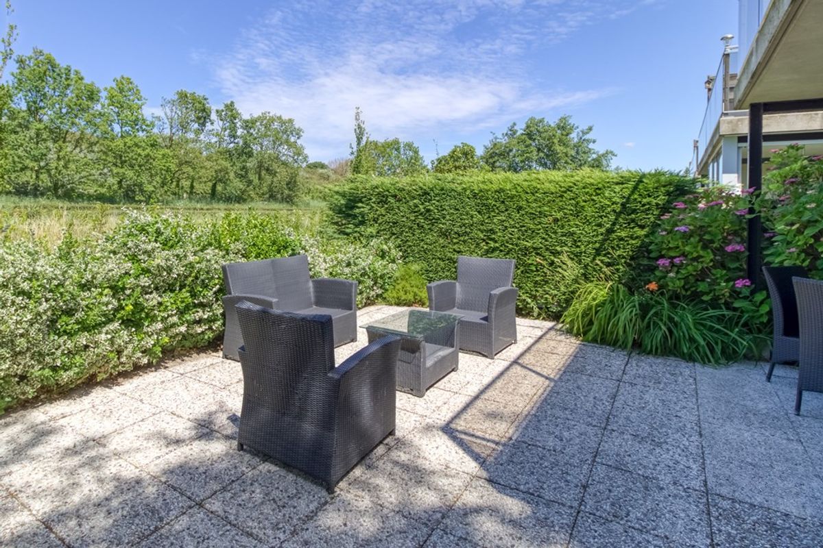 Via de schuifdeur in de woonkamer komt u op ruime gedeeltelijk overdekte terras met zicht op veel groen. Doordat het appartement op de hoek is gelegen is er ook een stukje tuin aan de zijkant van het appartement en kunt u van de achtertuin naar de voortuin lopen. De voortuin is gelegen op het zuiden waar het heerlijk genieten is van het zonnetje. Bovendien is er volop privacy door de hoekligging en de hoge haag rondom de tuin.