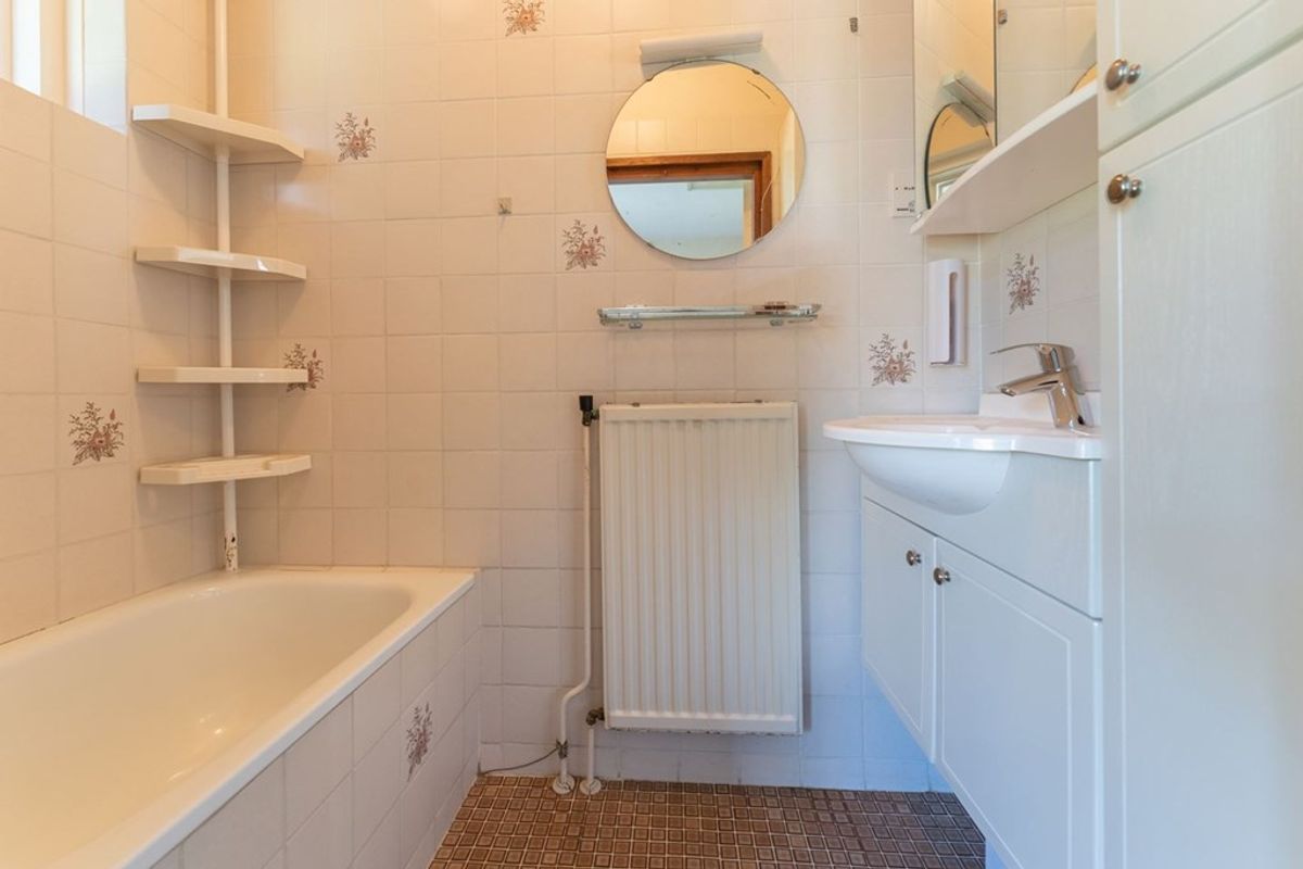 • Via de keuken toegang tot de ruime kelder en de badkamer met zitbad, douche en wastafelmeubel.