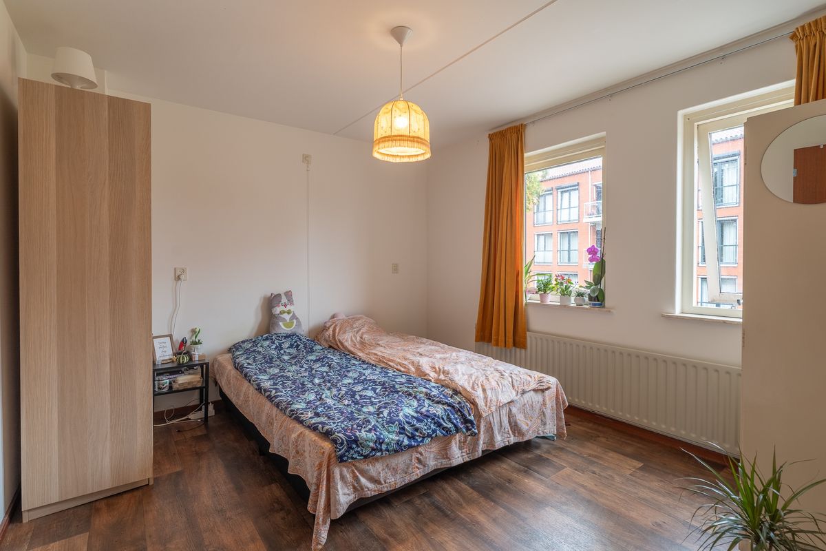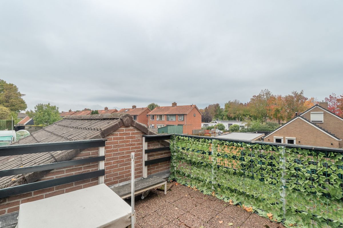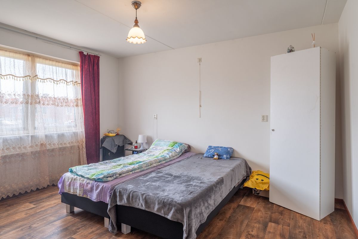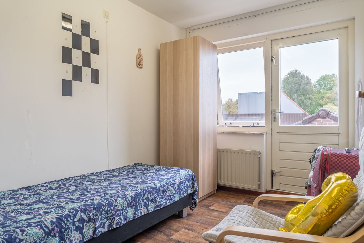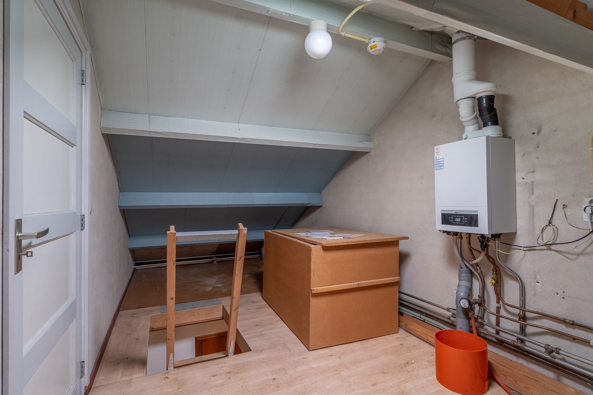 Er zijn nog twee slaapkamers, waarvan één direct toegang biedt tot het balkon. De aparte badkamer is compact en functioneel en voorzien van daglicht. Via de overloop is er middels een vlizotrap toegang tot een grote vliering. Hier is een afsluitbare kamer met dakraam, perfect als hobbyruimte.