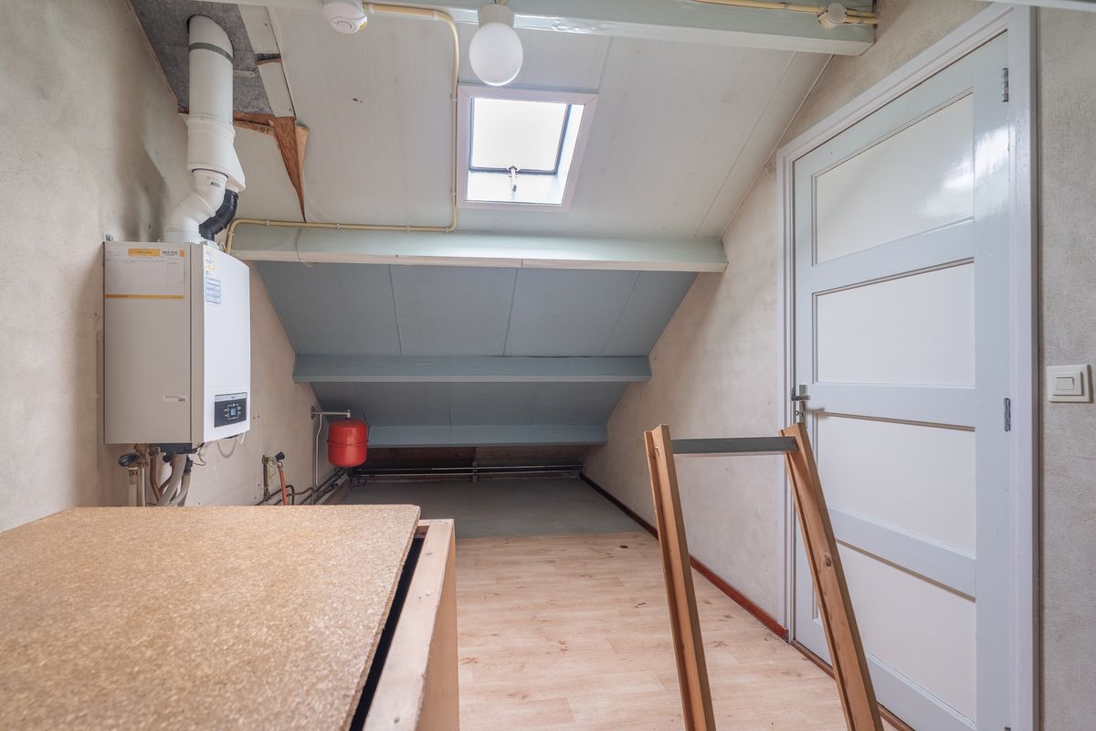 De keuken is aan de achterzijde gesitueerd en heeft een directe doorgang naar de bijkeuken. Hier is extra ruimte voor bijvoorbeeld witgoed, voorraad of klusspullen. De bijkeuken biedt toegang tot de tuin én tot de ruime stenen berging. Deze berging heeft een vlizotrap naar een zolder, ideaal voor extra opslag en stalling.