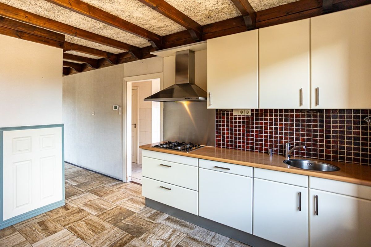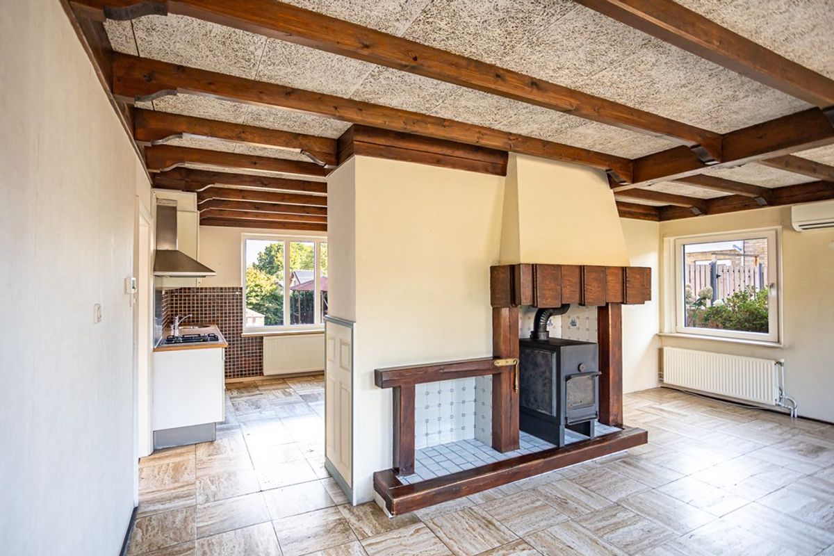 hal/entree, L-vorm eet-/woonkamer met haard (allesbrander) en airco-unit, woonkeuken met luxe keukenblok in dubbel opstelling met diverse inbouwapparatuur, slaap-/werkkamer, bijkeuken met witgoedaansluiting, bergkast met cv-ketel, luxe (hang)toilet met fontein.