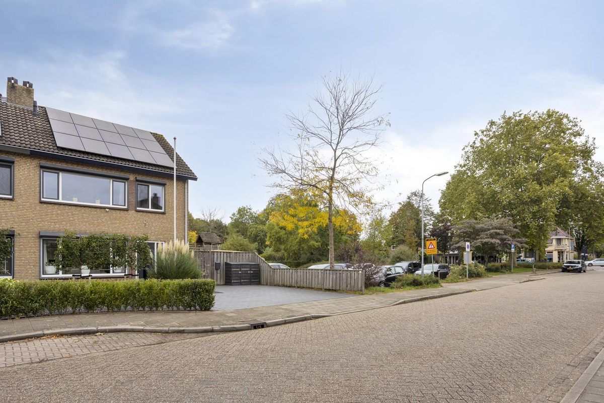 Aan de voorzijde van de woning is een brede oprit met parkeergelegenheid voor 2 auto's naast elkaar op eigen terrein.