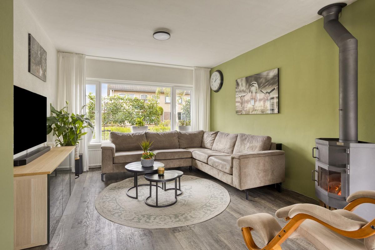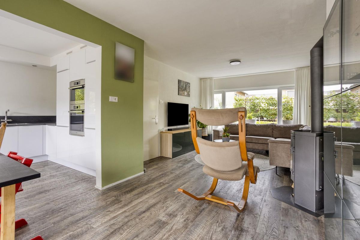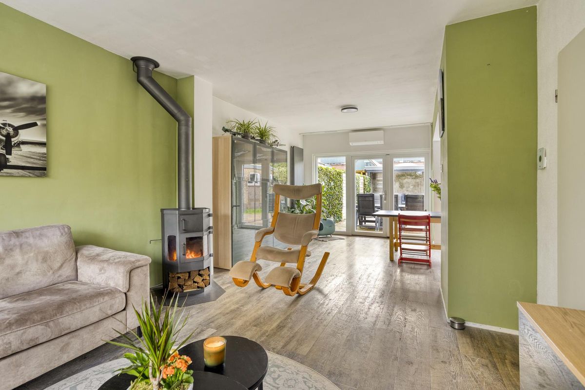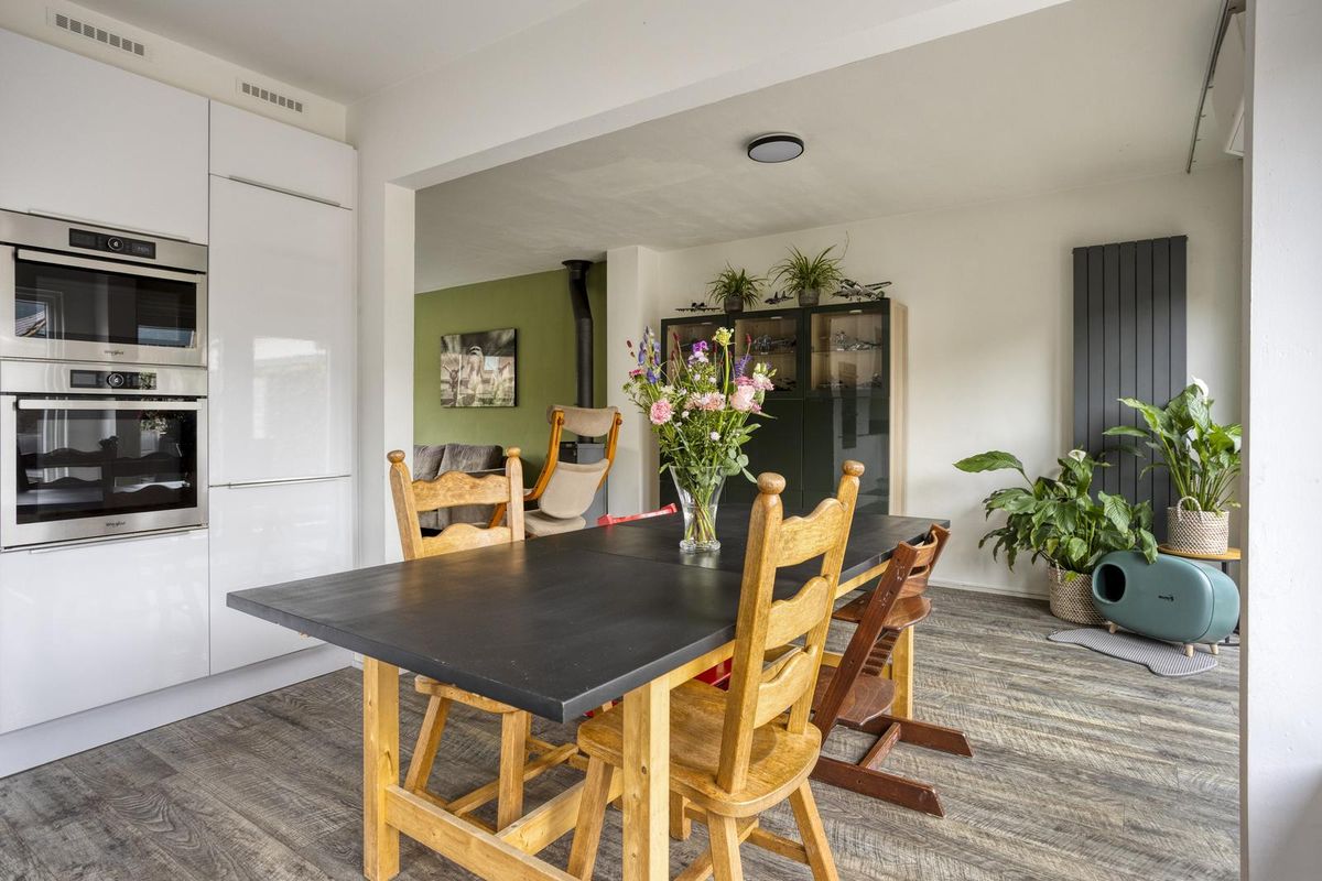 Bij binnenkomst valt meteen de grootte van de woonkamer op, met voldoende plek voor zowel een zit- als eetgedeelte. De zithoek is aan de voorzijde van de woning gesitueerd en is voorzien van een sfeervolle houtkachel. Aan de achterzijde van de woning is ruimte voor een 6/8-persoons eethoek. In de achtergevel is een grote raampartij met openslaande tuindeuren geplaatst, ideaal voor het combineren van het binnen- en buitenleven. De woonkamer is tevens voorzien van airconditioning.