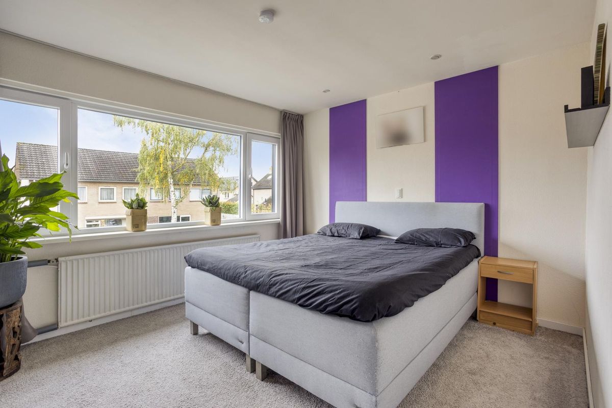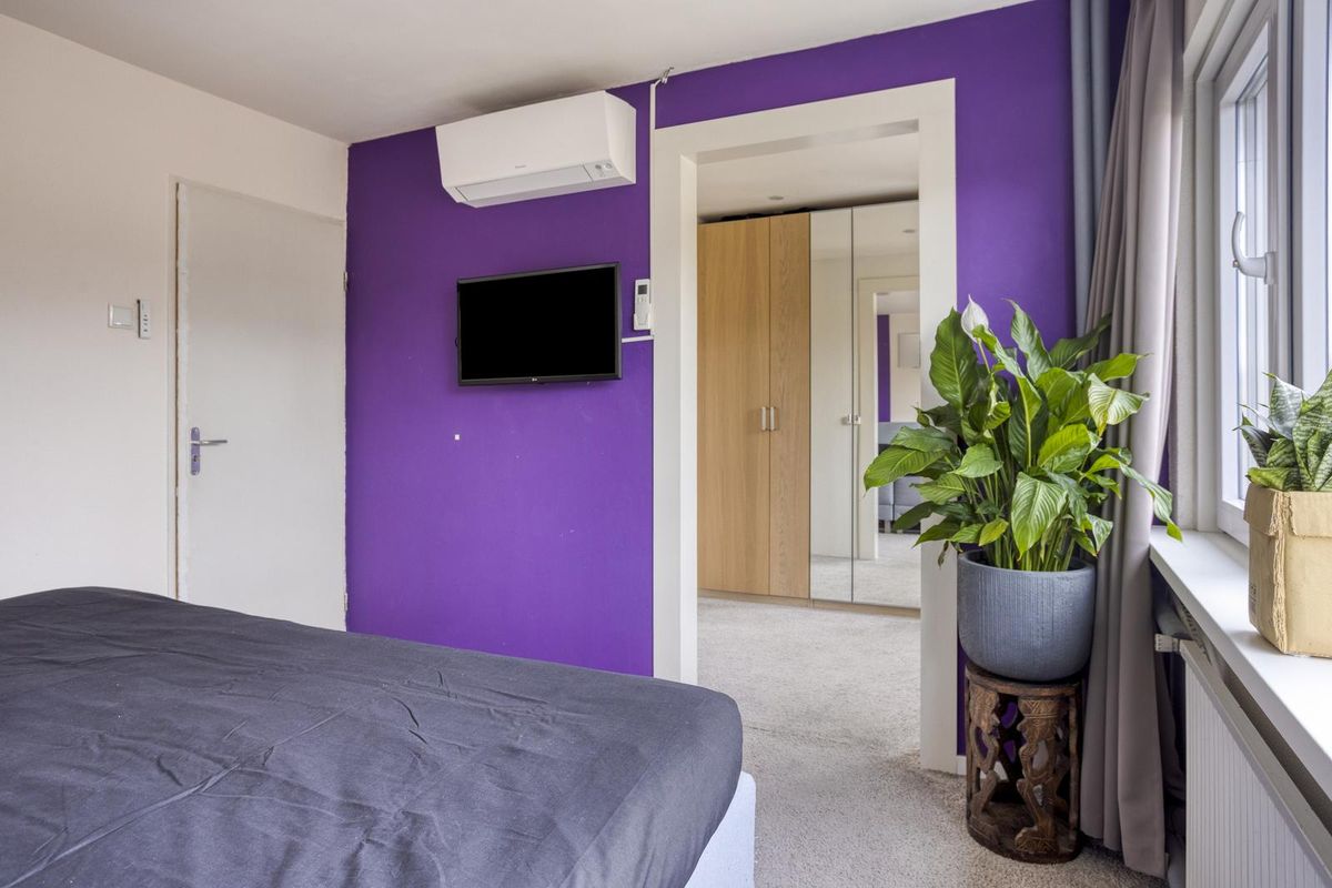 Via de trapopgang vanuit de hal is de 1e verdieping te bereiken, overloop, zeer royale slaapkamer (circa 18 m2) aan de voorzijde van de woning. Oorspronkelijk waren dit 2 slaapkamers, maar zijn nu samengevoegd waardoor er een slaapkamer met grote walk-in closet is ontstaan. Aan de achterzijde van de woning zijn 2 slaapkamers van circa 12 en 10 m2 gelegen. Alle slaapkamers op deze verdieping zijn voorzien van airconditioning.