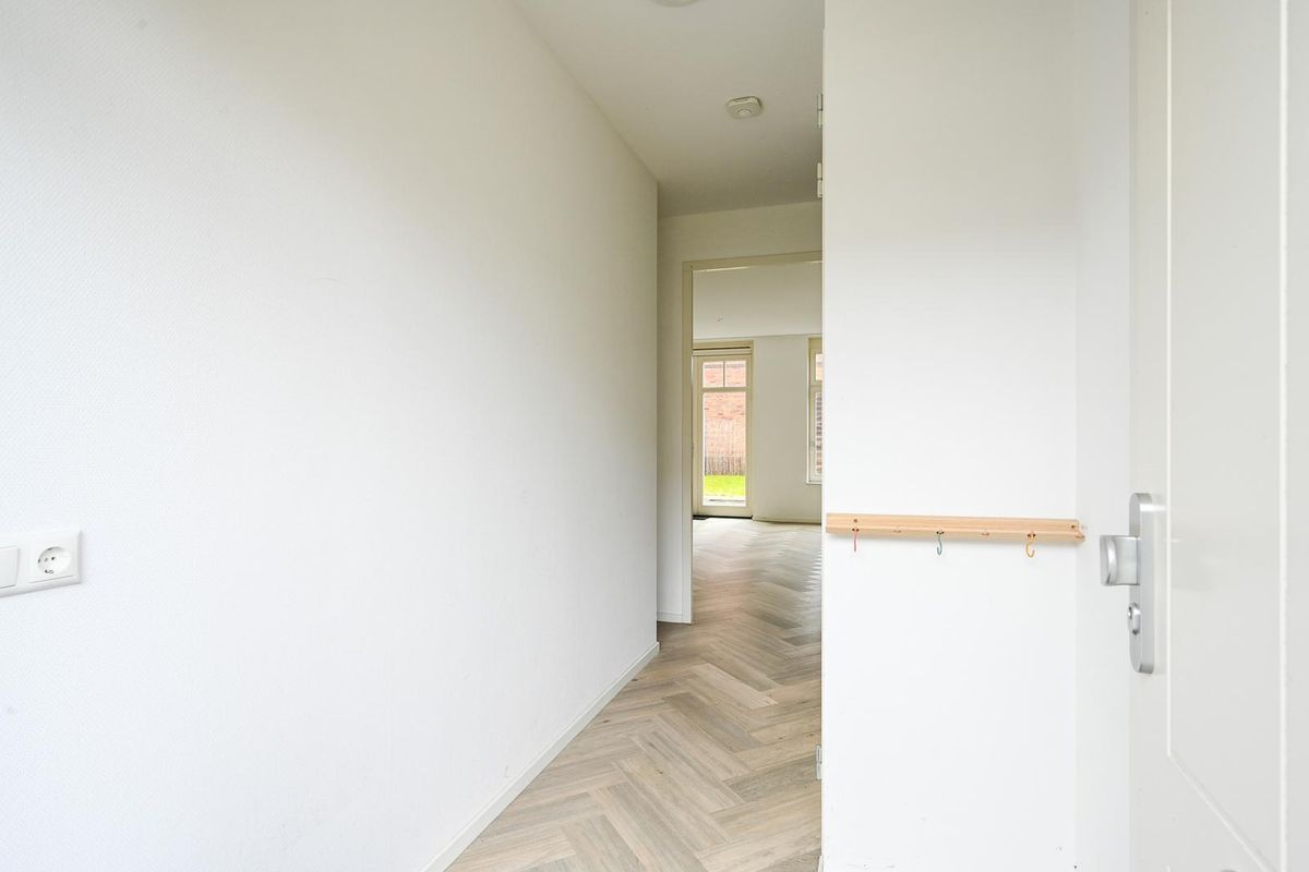 Voortuin met entree tot de woning. Ruime hal met meterkast (9 groepen) en een modern, volledig betegeld toilet voorzien van hangcloset, inbouwreservoir en fonteintje.