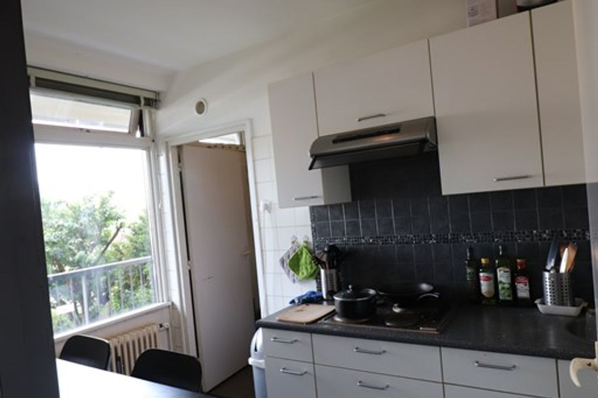 In dit appartement worden de keuken, bijkeuken, separate toilet, badkamer en de gezamenlijke woonkamer gedeeld met 2 medestudenten.