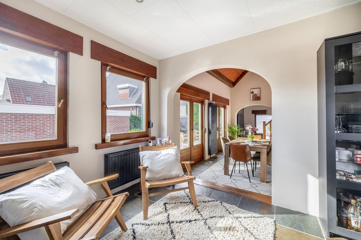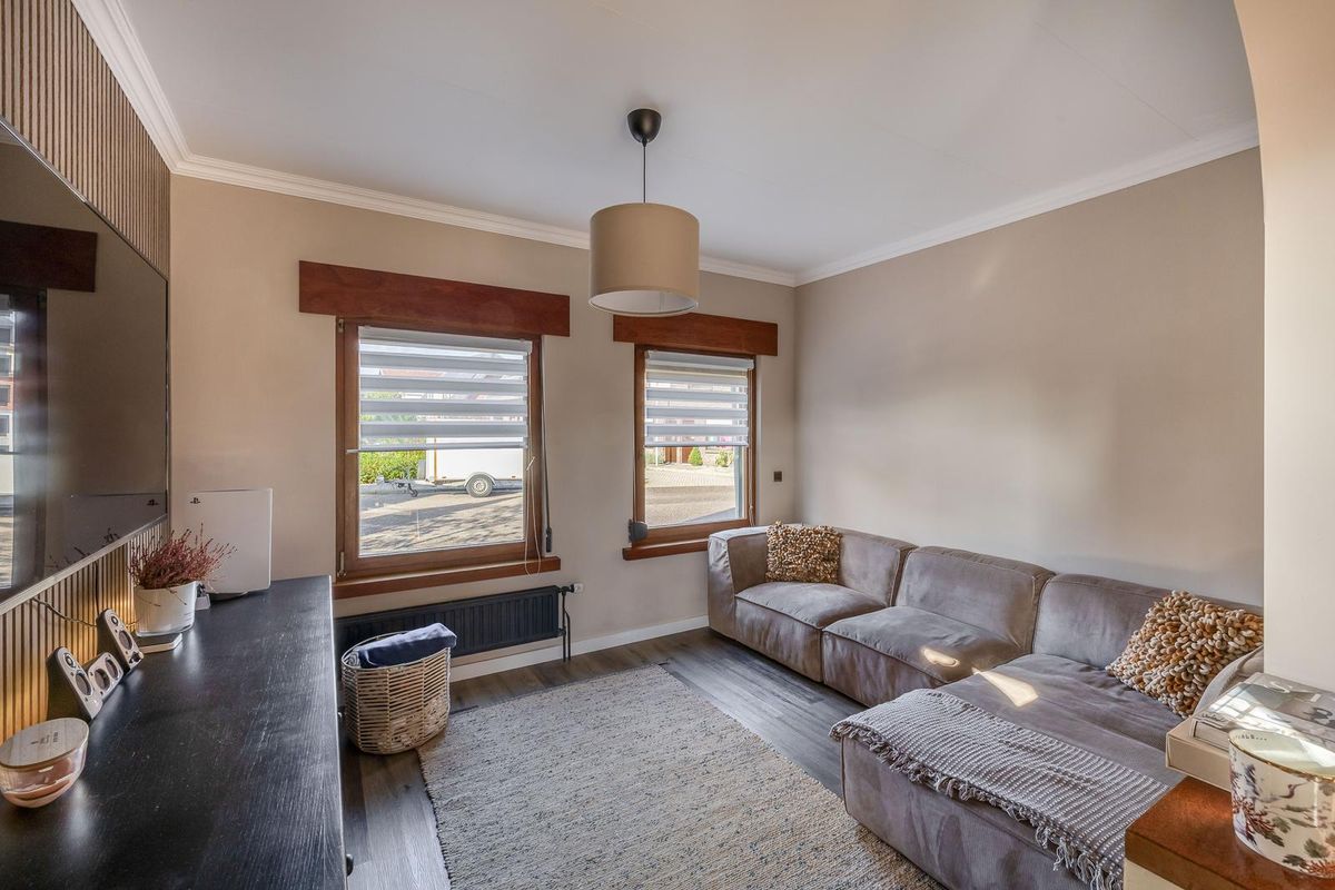 De woonkamer met aparte zitkamer is zeer ruim. De open trap met vide biedt toegang tot de eerste verdieping. De vele ramen en de openslaande deuren (2x) zorgen voor veel daglicht. Ten slotte is er een open haard aanwezig.