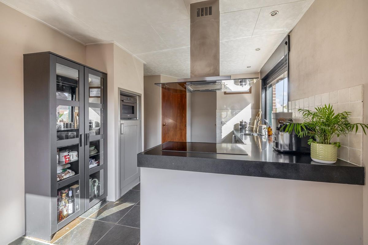 De ruime open keuken is voorzien van een inductiekookplaat, afzuigkap, combi oven/magnetron, vaatwasser en koelkast. Er is tevens een grote vaste voorraadkast aanwezig.