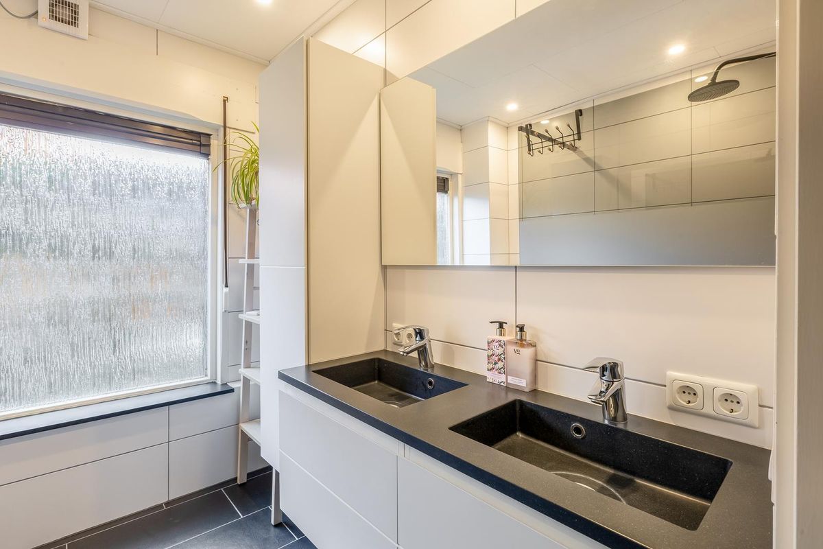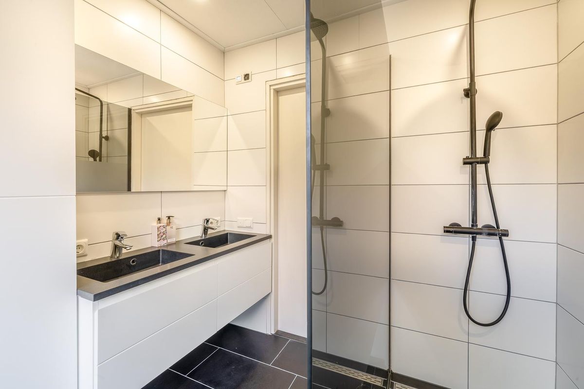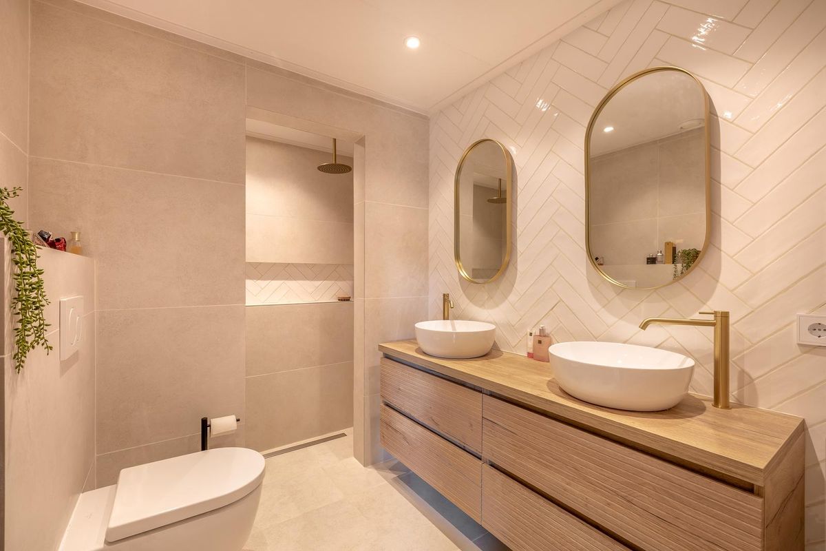 Beide badkamers zijn nieuw. Eén badkamer is voorzien van een douche, wastafelmeubel, toilet, designradiator en raam. De andere badkamer is en-suite bereikbaar via de hoofdslaapkamer en voorzien van een dubbele inloopdouche, een dubbel wastafelmeubel, toilet en designradiator.