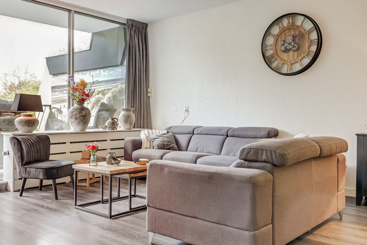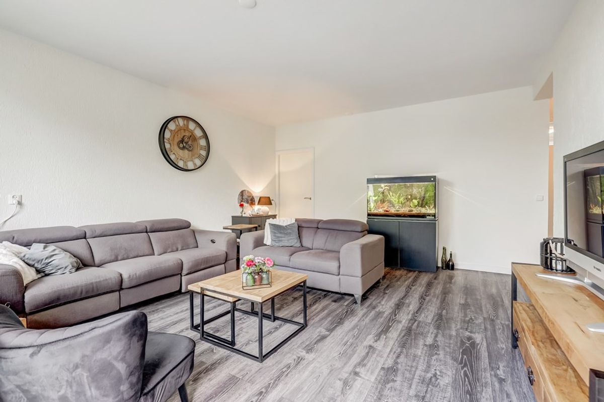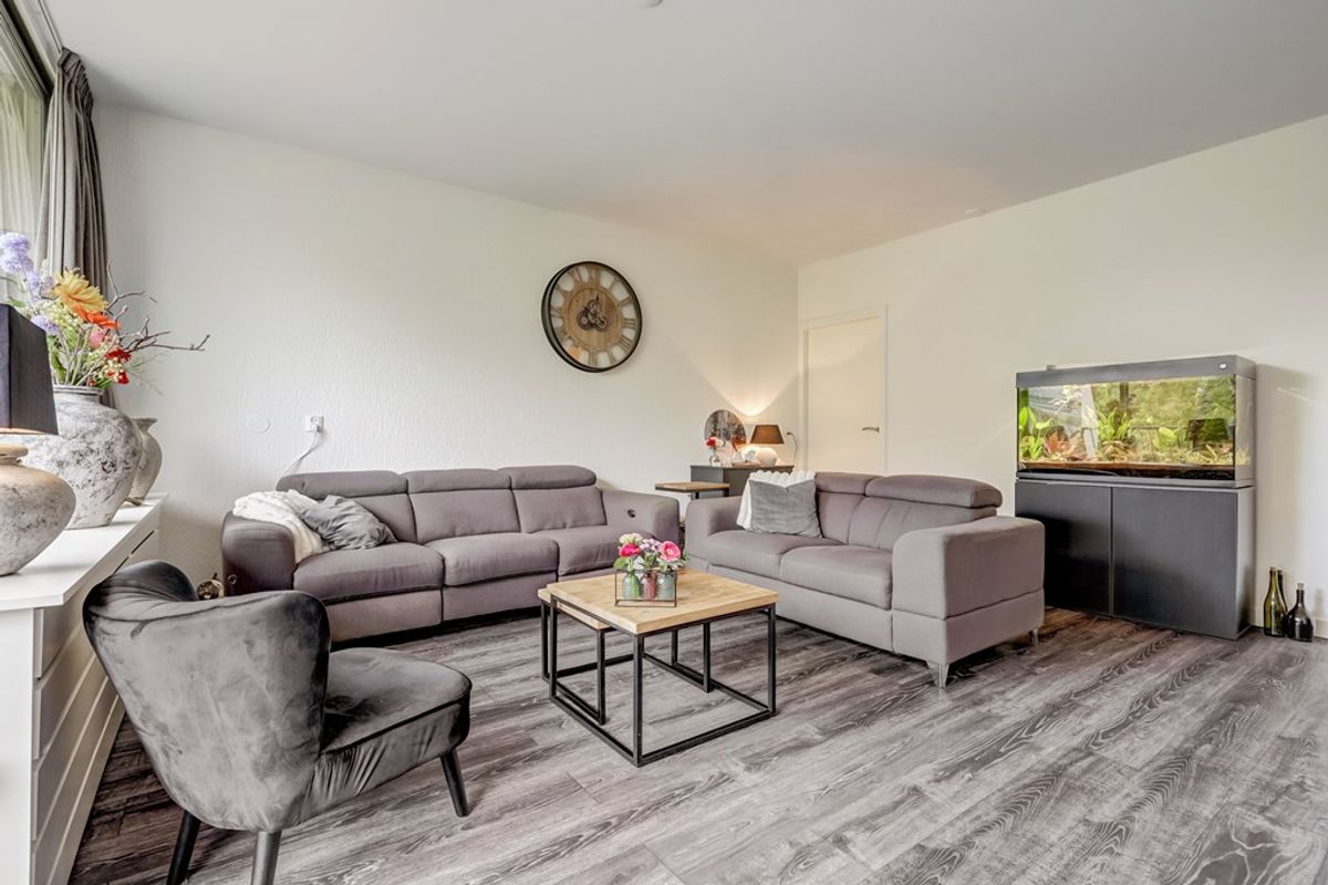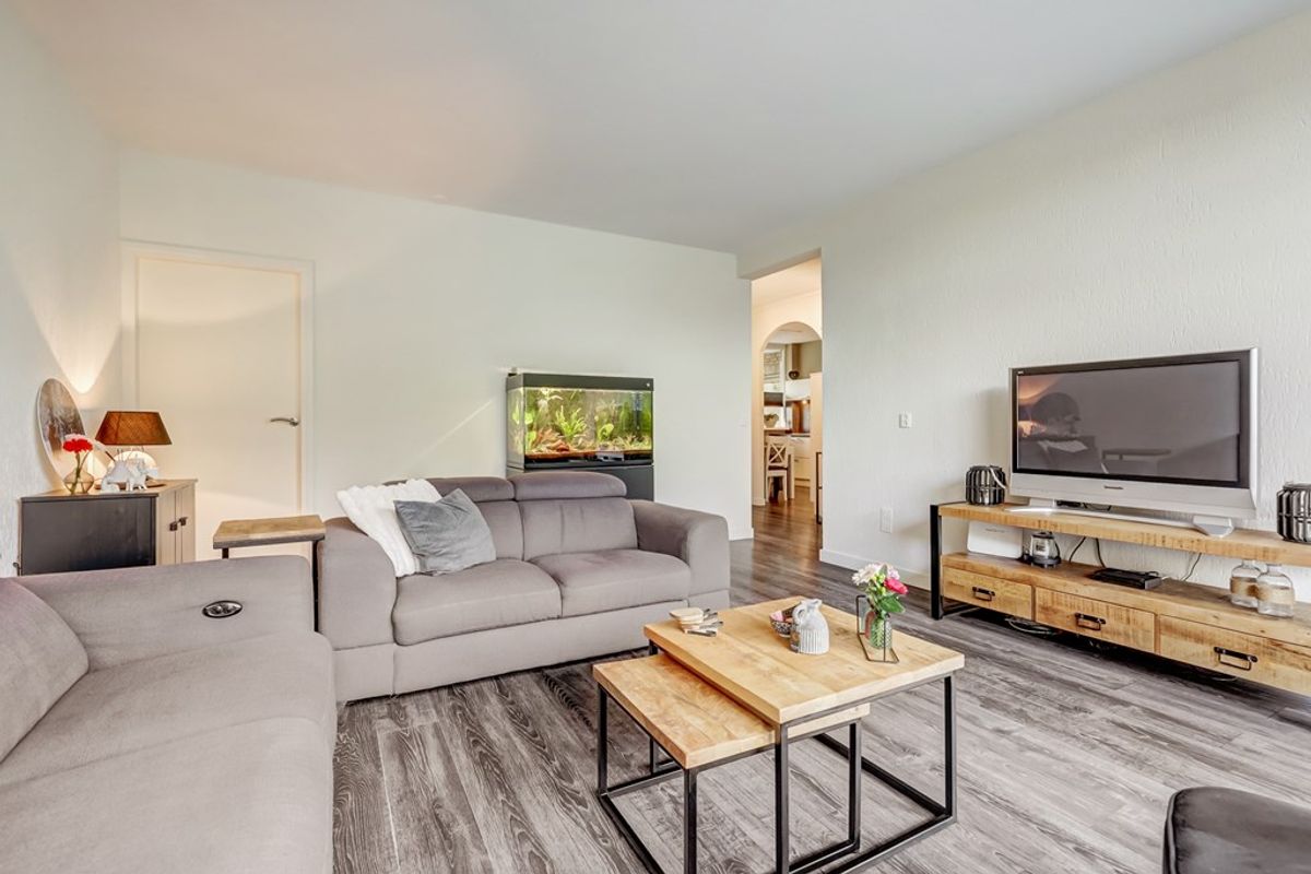 De lichte woonkamer (ca. 22 m²) is voorzien van een laminaatvloer en biedt via een grote schuifpui toegang tot het royale terras. Hier geniet u van de middag- en avondzon, en met het zonnescherm creëert u eenvoudig een fijne schaduwplek.