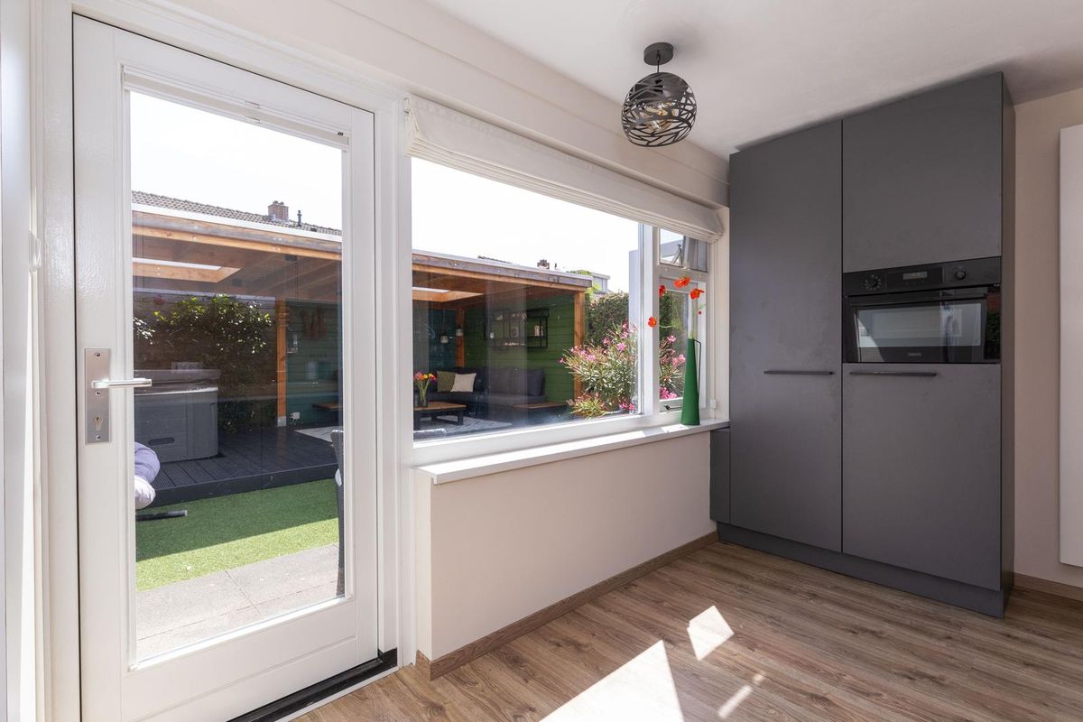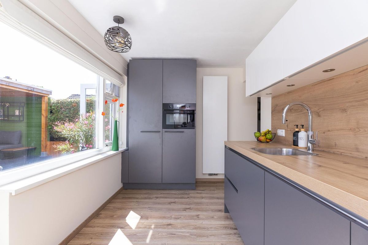Keuken – Geplaatst in de aanbouw, voorzien van inbouwapparatuur. Met grote raampartijen, wasopstelling en een extra achterdeur.