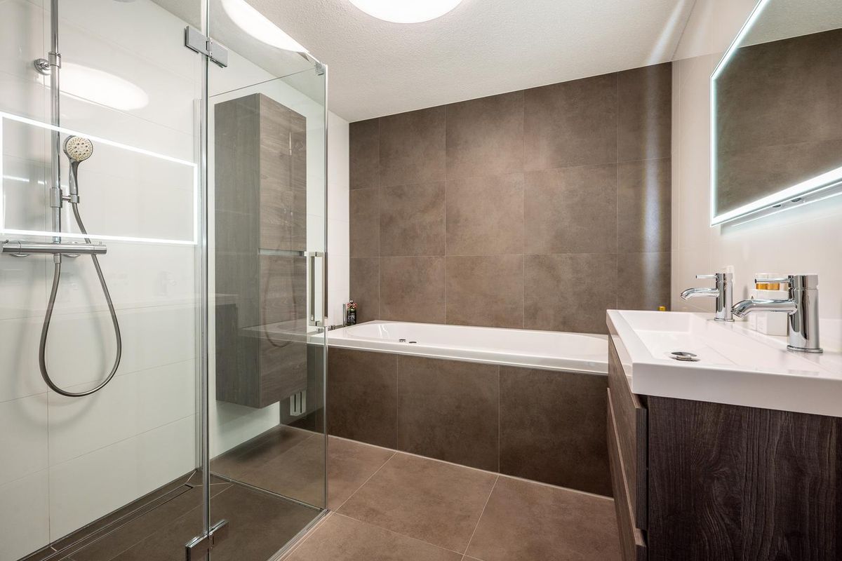 - Stijlvolle badkamer voorzien van inloopdouche, ligbad met jacuzzi, wastafelmeubel, praktische toiletkast en elektrische vloerverwarming (2019)