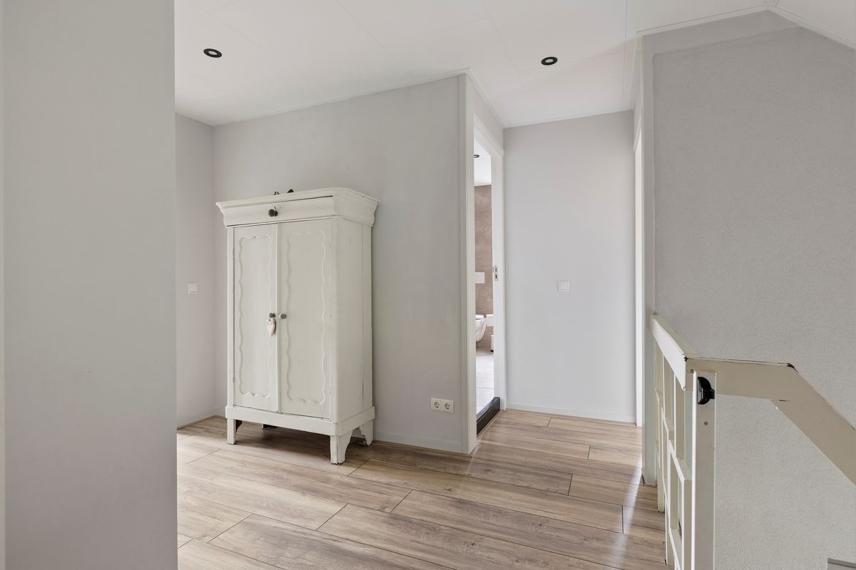 Via de ruime, centrale overloop zijn de vier slaapkamers te bereiken (ca. 7, 7, 7 en 16 m²) en de luxe badkamer met ligbad, inloopdouche, hangtoilet en dubbele wastafel met meubel. Ook hier is het geheel prachtig en luxe afgewerkt. De gehele verdieping is tevens voorzien van kunststof kozijnen. In de grootste slaapkamer is een wandvullende inbouwkast fraai weggewerkt achter het bed.