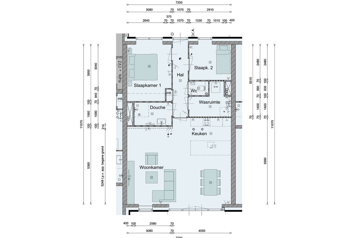 - De appartementen worden standaard opgeleverd zonder keuken en inclusief sanitair en tegelwerk (toilet en fonteintje, badkamer met toilet, wastafel en douchemengkraan met toebehoren);