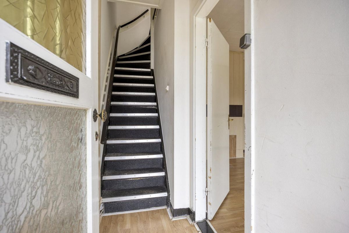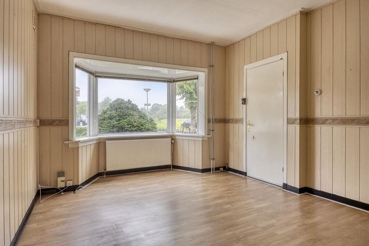 Hal met trapopgang, meterkast en toegang tot de woonkamer. In de woonkamer valt meteen de erker op met uitzicht over het plantsoen. Achterin vind je de keuken en badkamer, beide toe aan een flinke make-over.