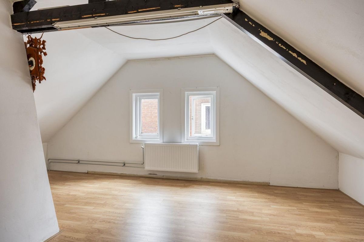 Strak afgewerkt en nu in gebruik als ruime slaapkamer, maar je kunt hier ook eenvoudig twee kamers van maken.