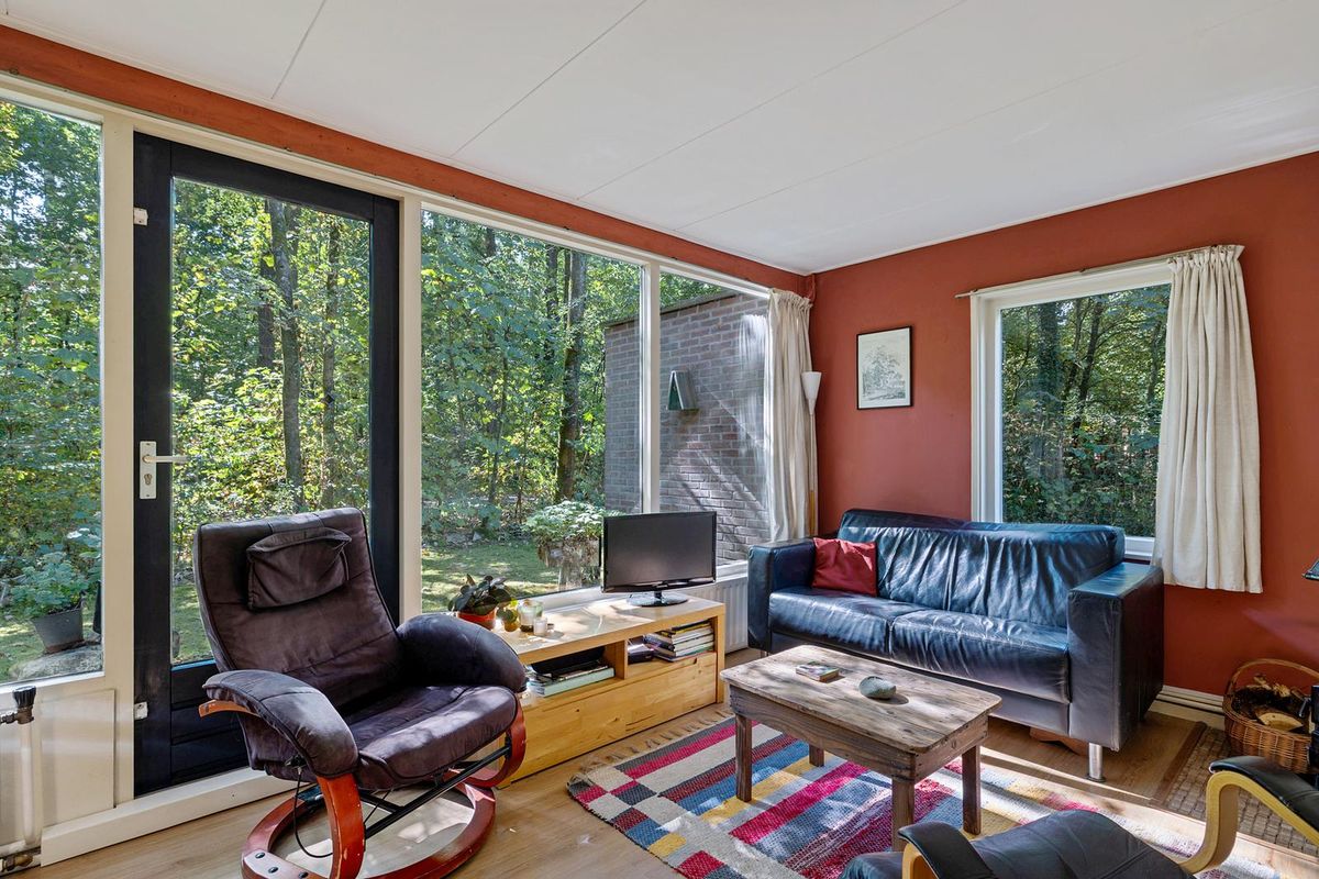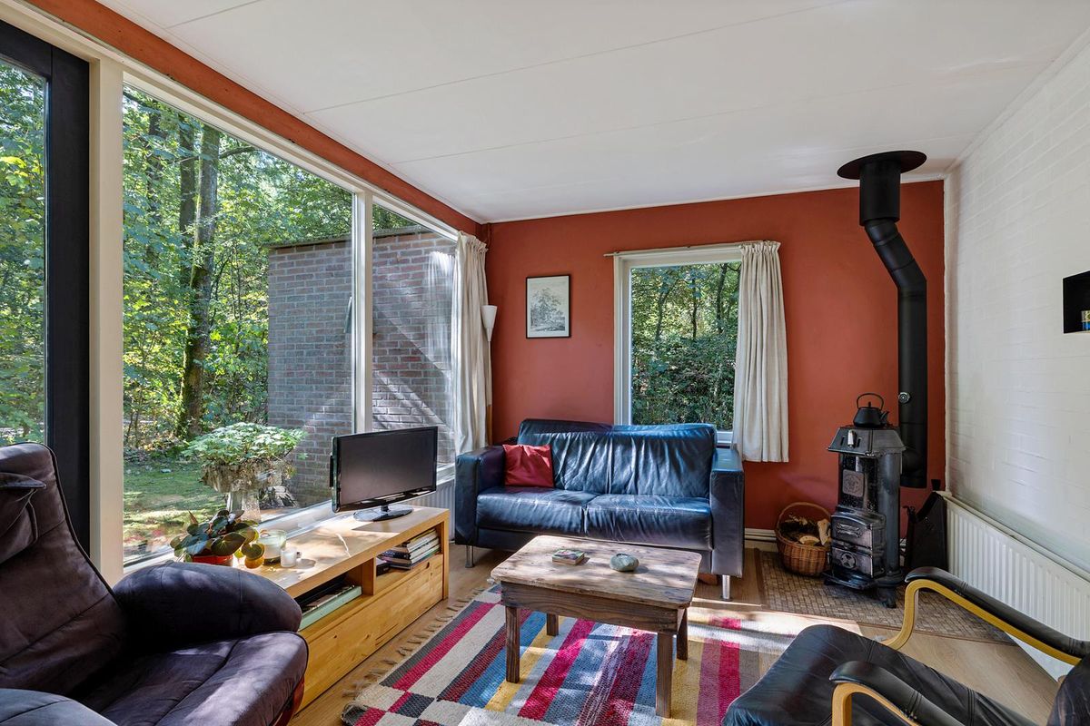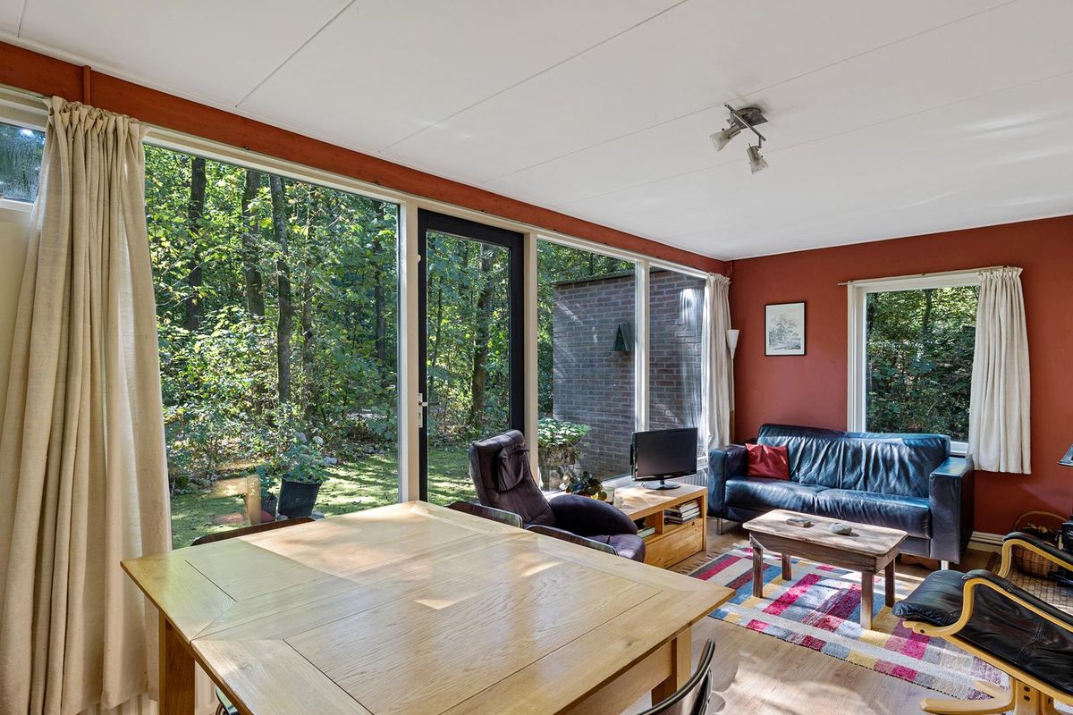 De woonkamer is licht en biedt een mooi uitzicht op de tuin. Vanuit de woonkamer stap je via de terrasdeur zo het terras op.