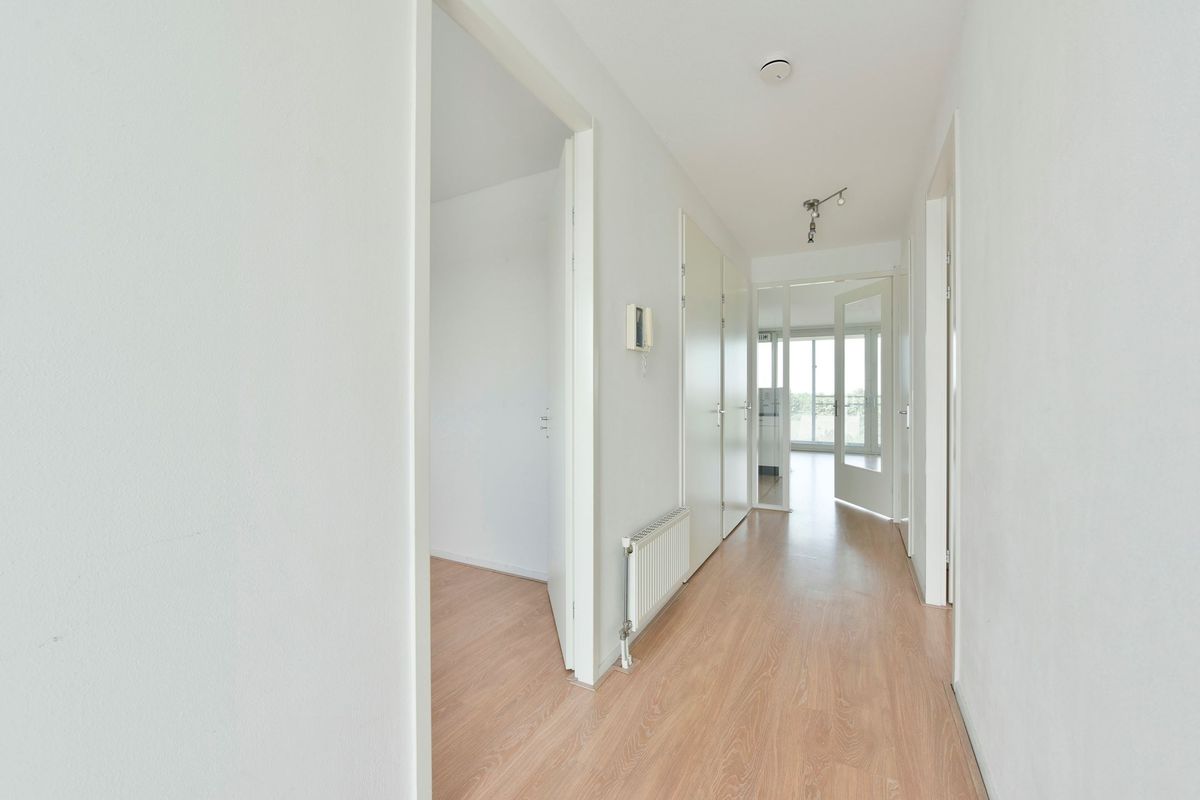 Via de centrale entree van het appartementencomplex kunt u de lift en/of de trapopgang nemen naar de bovenste verdieping. Aan het begin van de galerij treft u de entree van het appartement. Achter de voordeur bevindt zich de meterkast en een lange hal die u toegang geeft tot alle vertrekken. Aan de linkerzijde een prima slaapkamer en aan de rechterzijde de hoofdslaapkamer van ruim formaat! Aansluitend treft u de royale badkamer. De badkamer is voorzien van tegelwerk en heeft ook nog een heerlijk ligbad, een wastafelmeubel en een inloopdouche. De tweede deur herbergt het toilet en fontein. Voordat u de woonkamer ingaat, is aan de rechterzijde, de bijkeuken met de technische installaties. U kunt daar ook de wasmachine en droger aansluiten. De woonkamer is ruim en heeft veel daglicht door de ramen en de brede schuifpui. De schuifpui geeft u directe toegang tot het zonnige balkon.