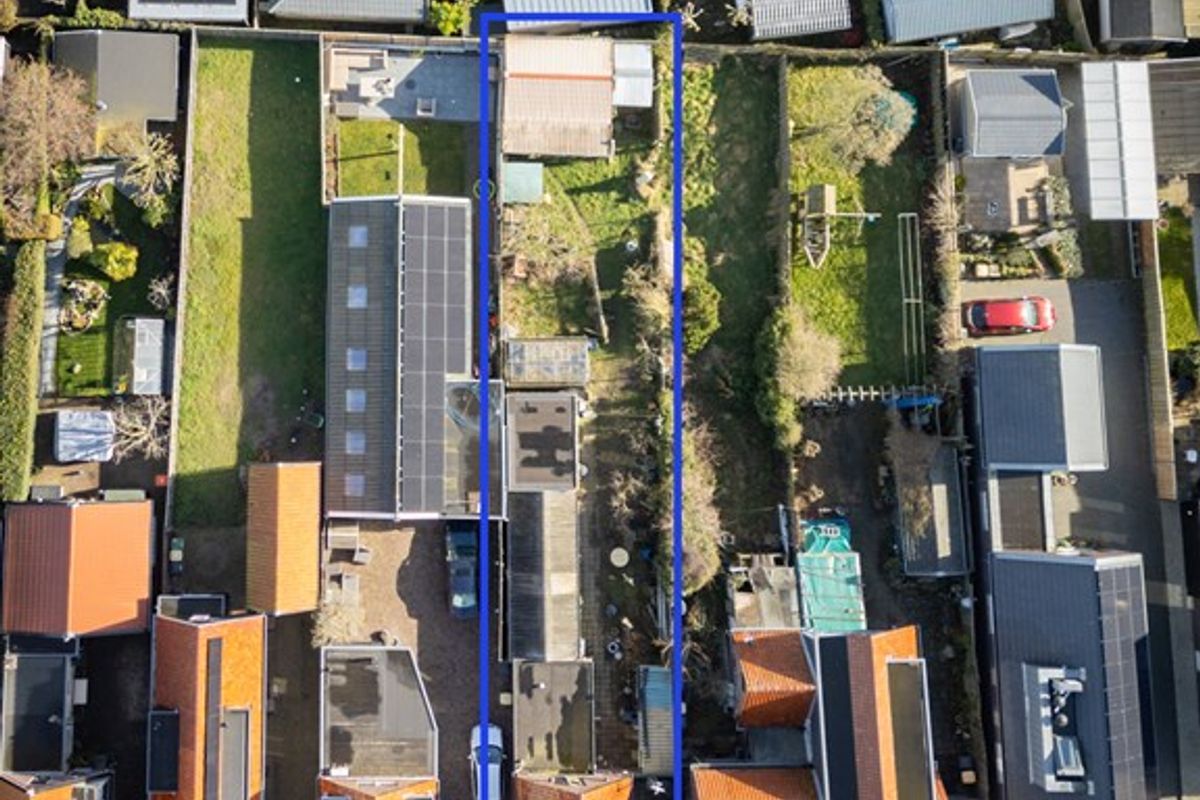 De achtertuin heeft door zijn diepte van ca. 27.5m2 de hele dag zon of als het te warm is is ook zitten in de schaduw goed mogelijk. Er zijn een drietal schuren aanwezig zodat er genoeg ruimte is voor een hobby. Door het maken van een oprit aan de straatzijde is het mogelijk om met een kar langs het huis in de tuin te komen.