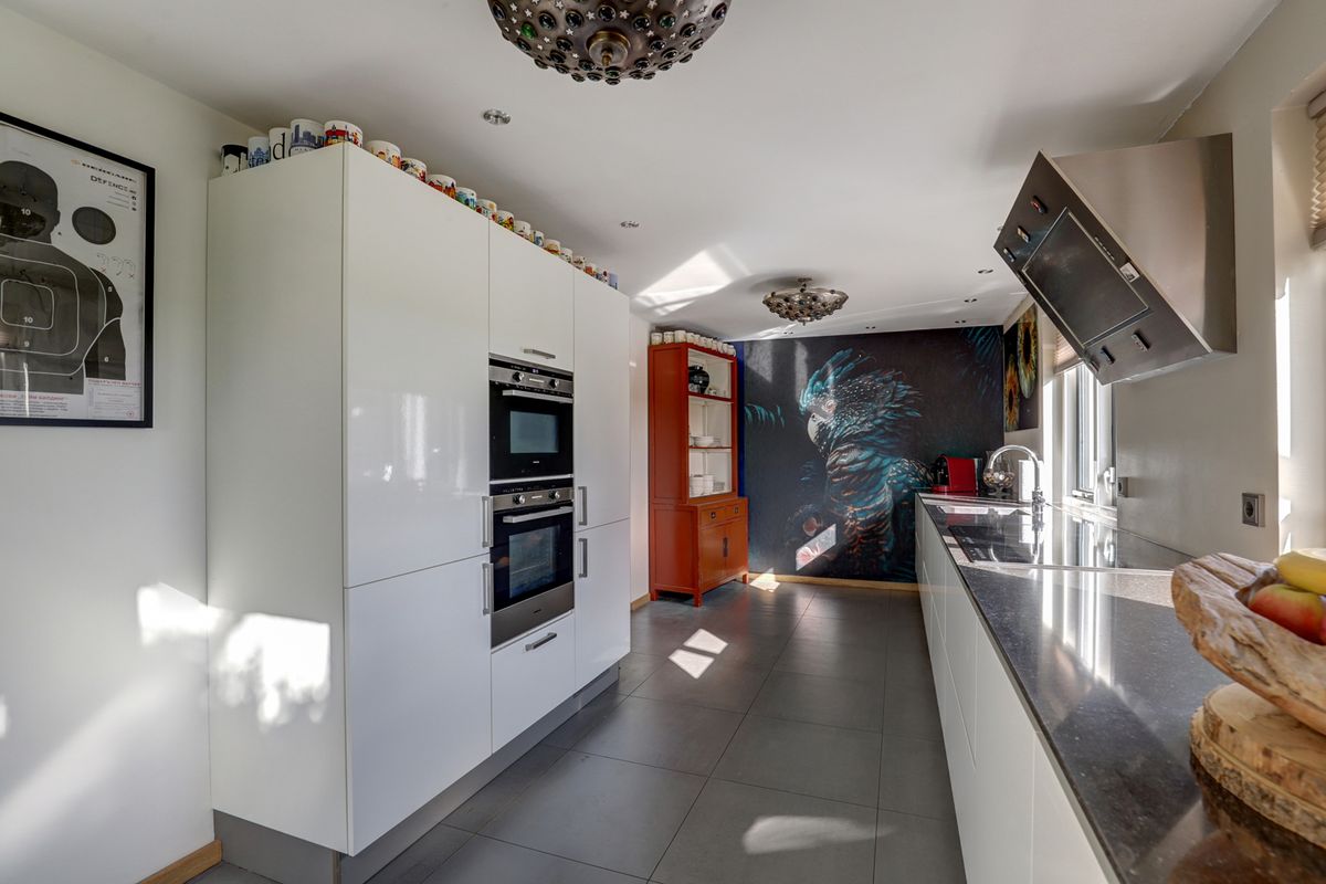 De woning beschikt over een sfeervolle en royale woonkeuken die het hart van het huis vormt. Dankzij de open opzet en de ruime indeling is dit dé plek waar koken, eten en samenzijn moeiteloos samenkomen. De luxe keuken is voorzien van diverse inbouwapparatuur Denk aan een inductiekookplaat met moderne afzuigkap, een combimagnetron en oven, ingebouwde vaatwasser, ruime koelkast en een grote spoelbak. en biedt volop werk- en bergruimte, waardoor koken hier een waar genoegen is.