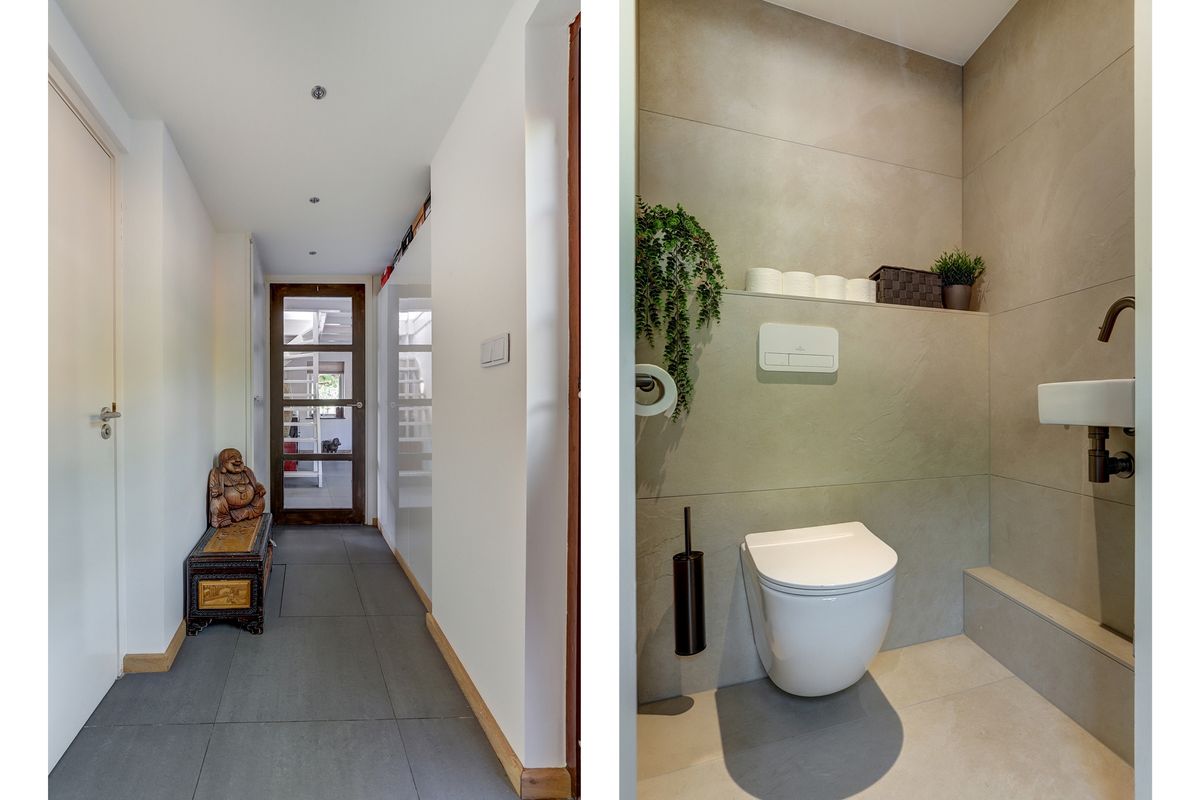 Door de gunstige lichtinval en het directe contact met zowel de woonkamer als de tuin, voelt de woonkeuken licht, ruimtelijk en uitnodigend aan. Vanuit hier geniet je bovendien van een prachtig landelijk uitzicht, waardoor koken en tafelen een ware beleving wordt.