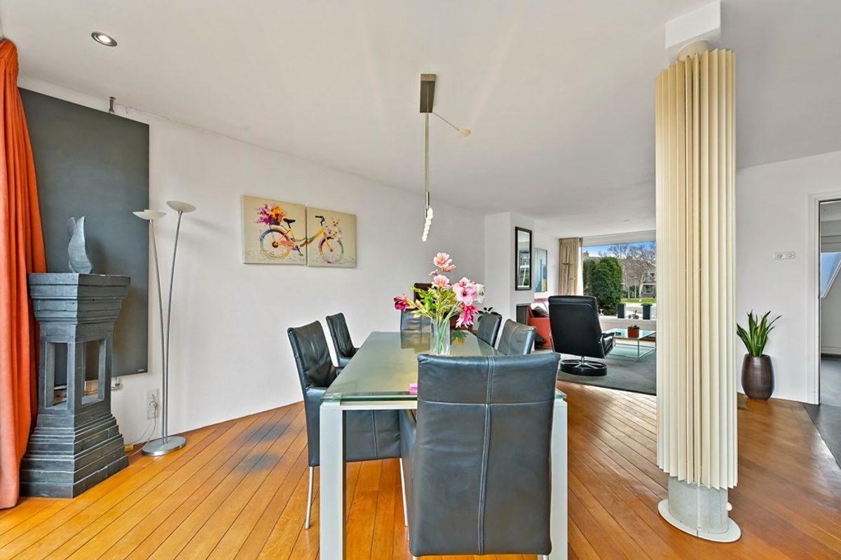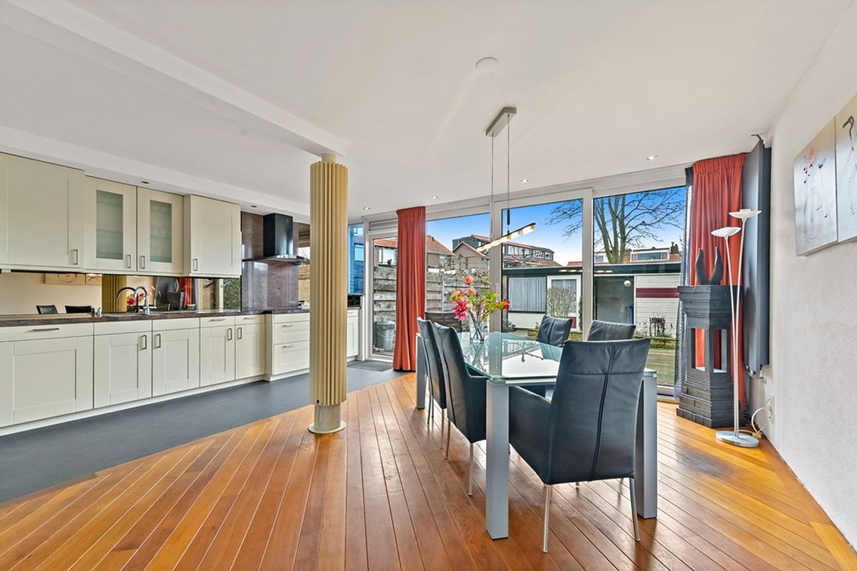 Via de voortuin betreedt u de hal met kelderkast, meterkast, toilet en trapopgang. De lichte en tuingerichte woonkamer biedt volop leefruimte en staat in open verbinding met de eetkamer en de ruime keuken. Aan de voorzijde is het gezellige zitgedeelte met een open haard. Aan de achterzijde is de woning uitgebouwd, waardoor er een royale leefruimte is ontstaan. De keuken is in de lengte geplaatst, waardoor er veel ruimte over is gebleven voor het eetgedeelte. De aanbouw is voorzien van een grote glazen schuifpui, waardoor er een fijne verbinding tussen de tuin en de woonverdieping is gecreëerd. In de achtertuin is het genieten van rust en ruimte. Er is veel ruimte achter de woning, waardoor er privacy in de tuin wordt ervaren. Achterin de tuin staat een 12m2 grote berging annex overkapping. De tuin is aan de achterzijde via de berging ontsloten met dubbele deuren, ideaal voor bijvoorbeeld een motor.