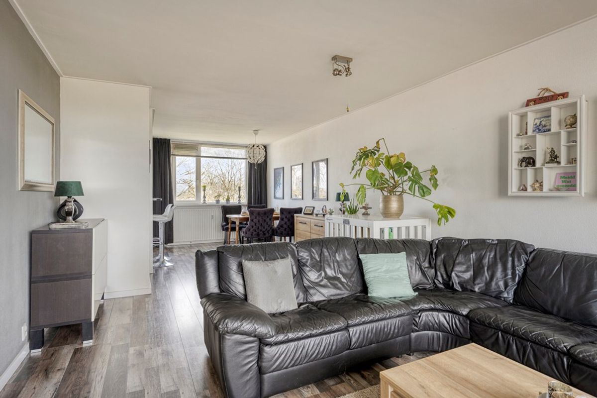 De woonkamer is ruim opgezet en dankzij de brede raampartijen heerlijk licht. Hier is volop ruimte voor een comfortabele zithoek en een gezellige eethoek. Vanuit de woonkamer heb je toegang tot het ruime balkon, waar je kunt genieten van het vrije uitzicht over het groen.