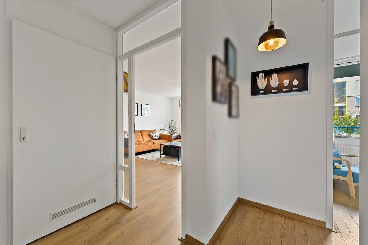 Entree met hal die toegang geeft tot alle vertrekken. De lichte woonkamer (ca. 21 m²) heeft grote raampartijen en een prettige indeling. De woonkeuken (ca. 12 m²) biedt ruim plek voor een eettafel en is de ideale plek voor lange avonden tafelen. Met een modern afgewerkte badkamer en twee ruime slaapkamers is het hier comfortabel wonen. Vanuit de woonkamer en slaapkamer betreed je zo het balkon van ca. 9 m².