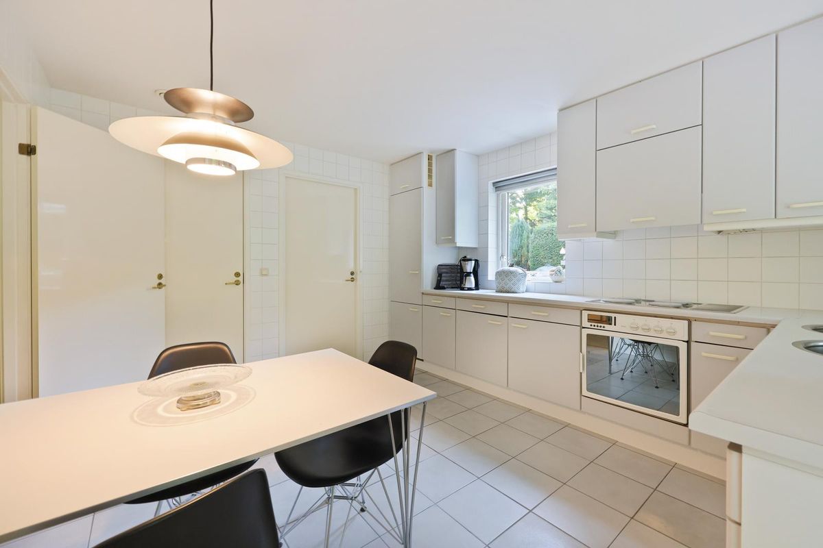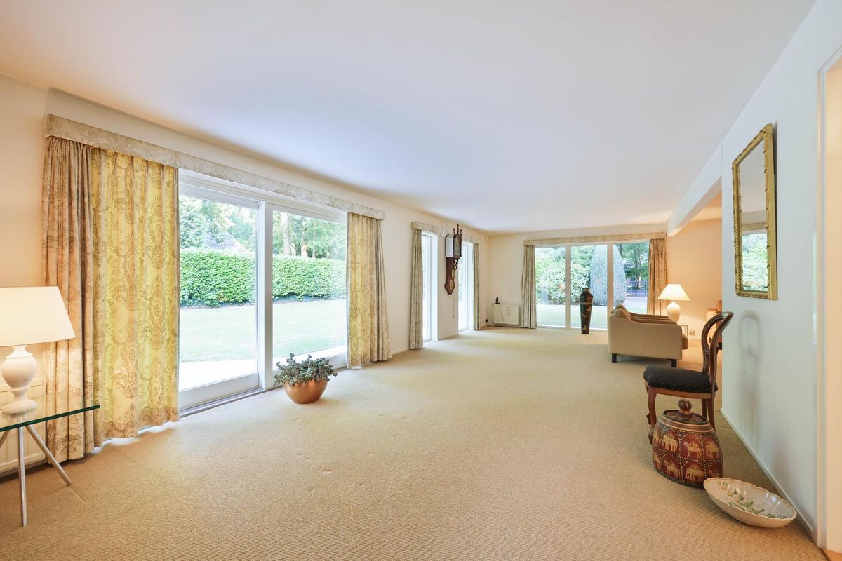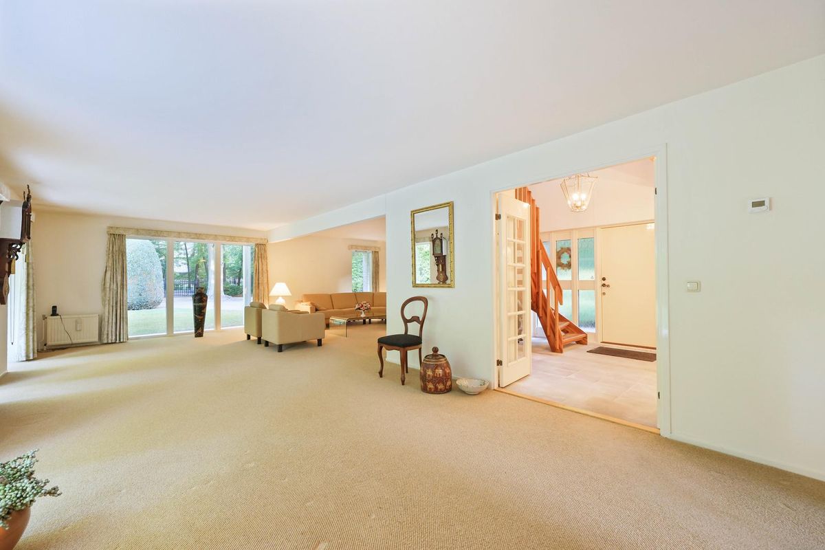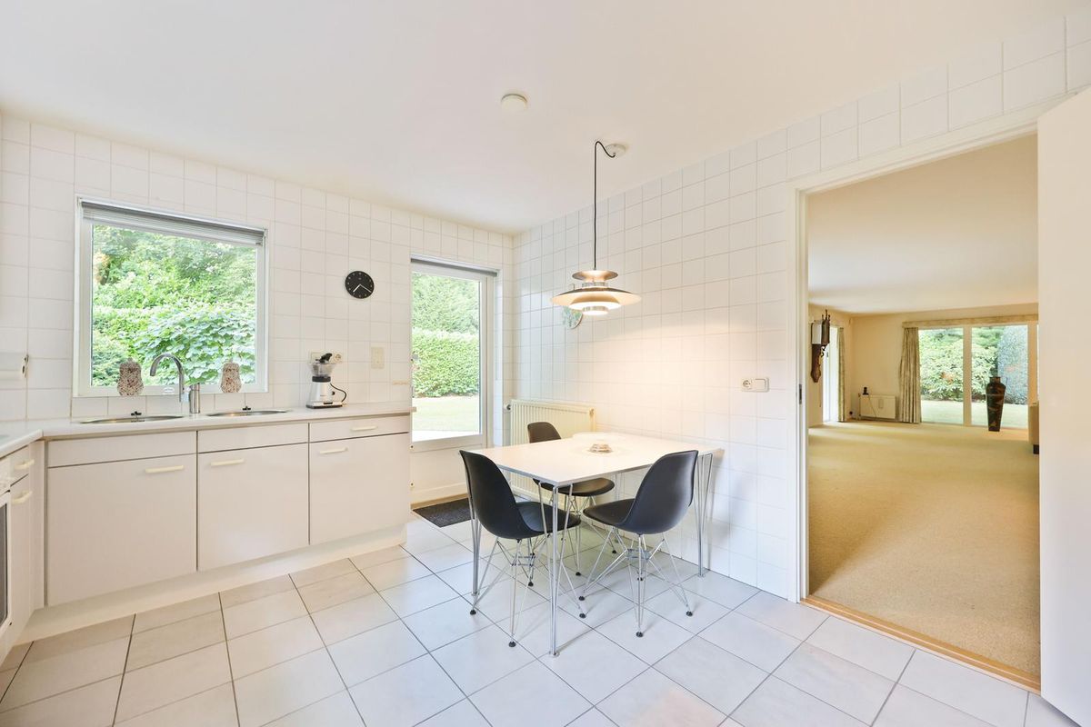 Vanuit de hal bereikt u diverse leefruimtes, waaronder de living. Deze lichte L-vormige ruimte kan op eenvoudige wijze bij de keuken worden betrokken. Dankzij de vele glazen puien heeft u een zeer fraaie lichtinval vanaf alle zijden en groen zicht richting de omliggende tuin. Aansluitend is een bijkeuken gesitueerd.