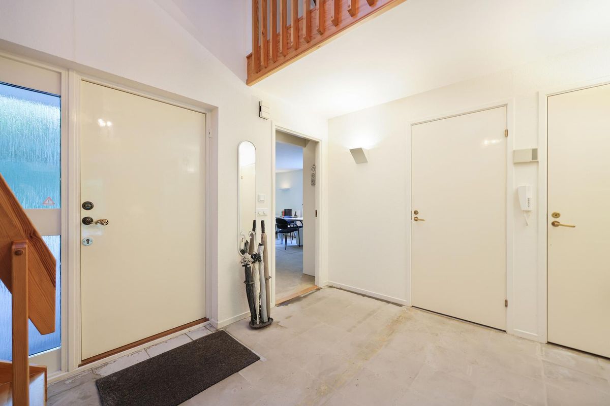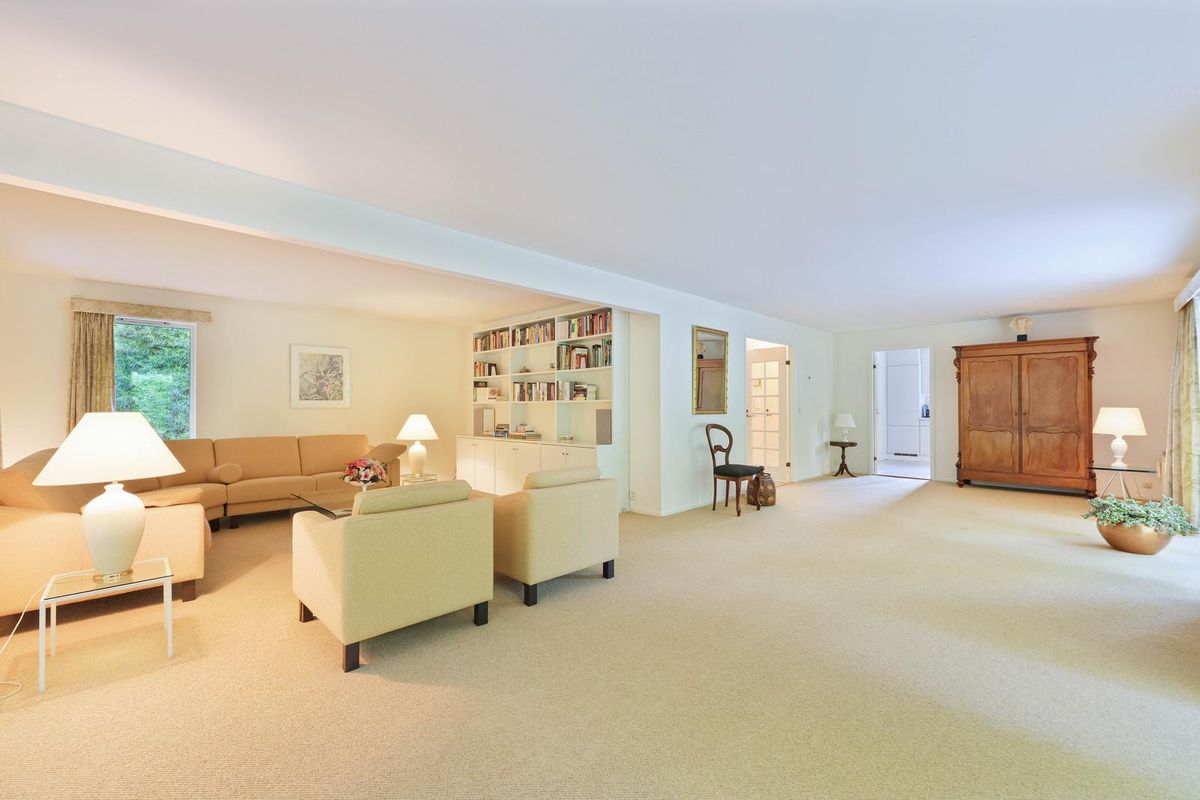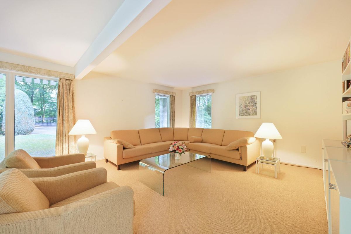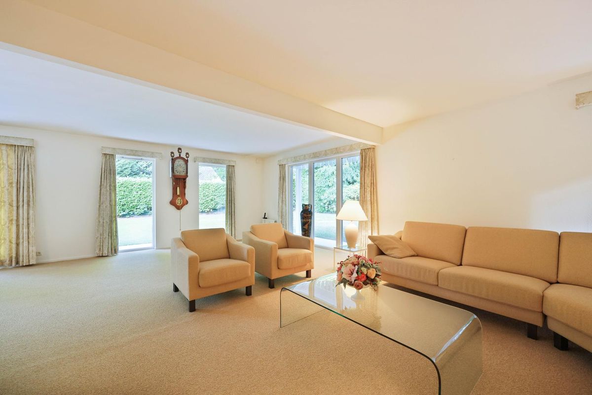 Vanuit de hal bereikt u diverse leefruimtes, waaronder de living. Deze lichte L-vormige ruimte kan op eenvoudige wijze bij de keuken worden betrokken. Dankzij de vele glazen puien heeft u een zeer fraaie lichtinval vanaf alle zijden en groen zicht richting de omliggende tuin. Aansluitend is een bijkeuken gesitueerd.