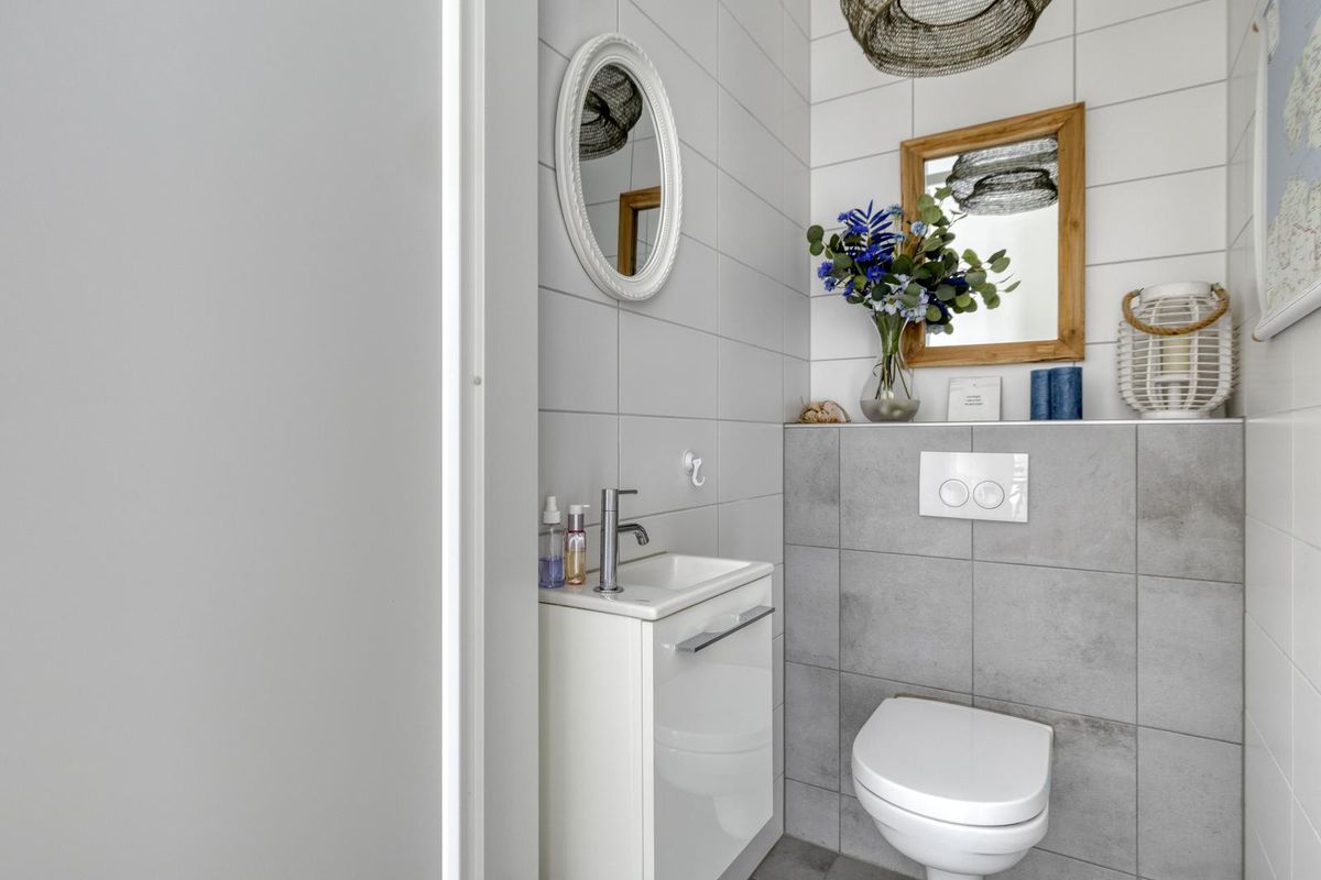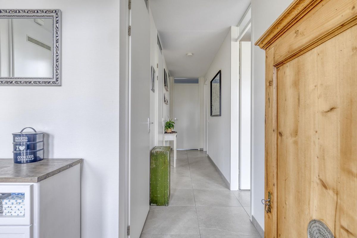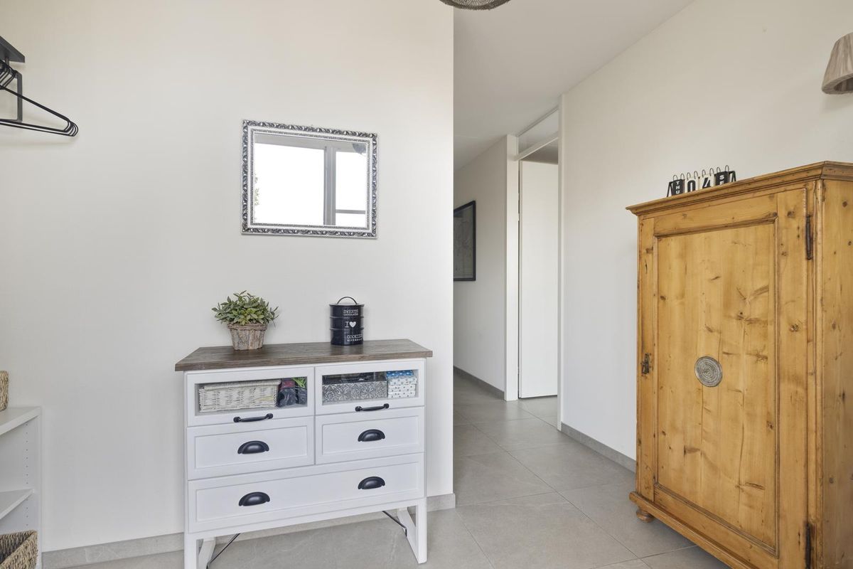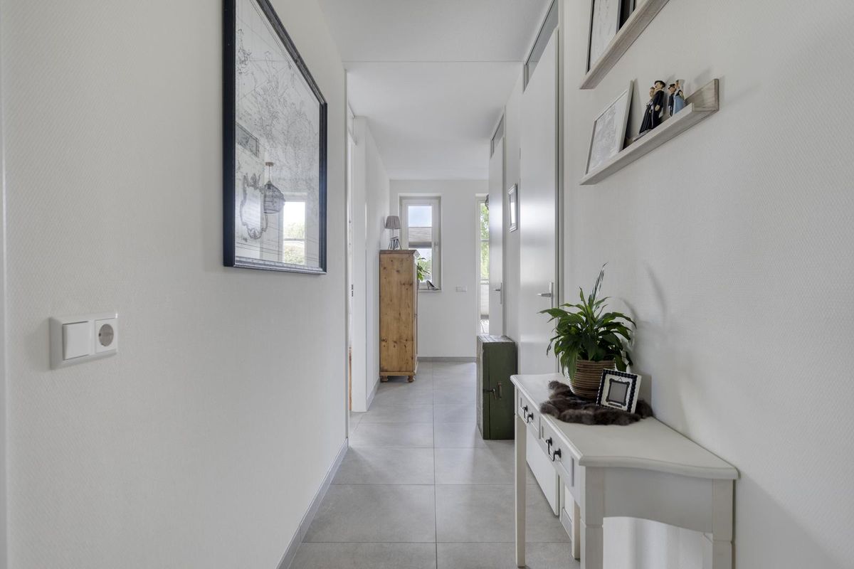 U betreedt de woning via de overkapte entree aan de voorzijde. De ruime hal geeft toegang tot de toiletruimte met fonteintje, meterkast en de berging met warmtepomp en wasmachineaansluiting.