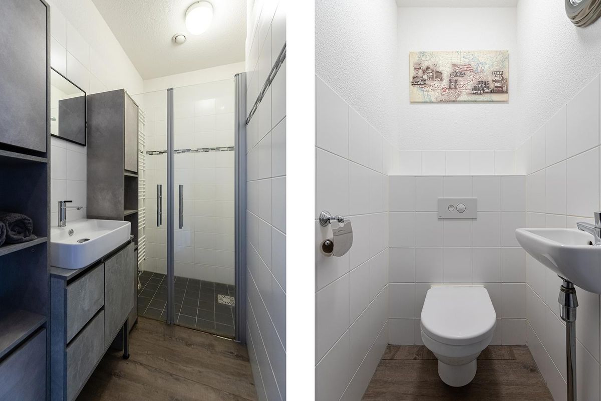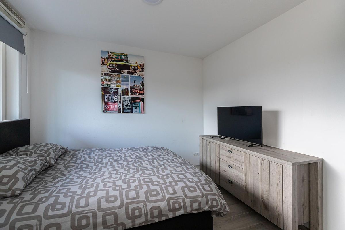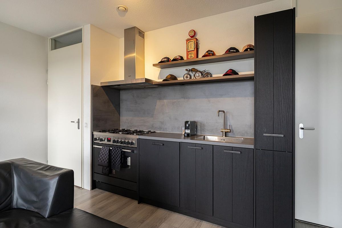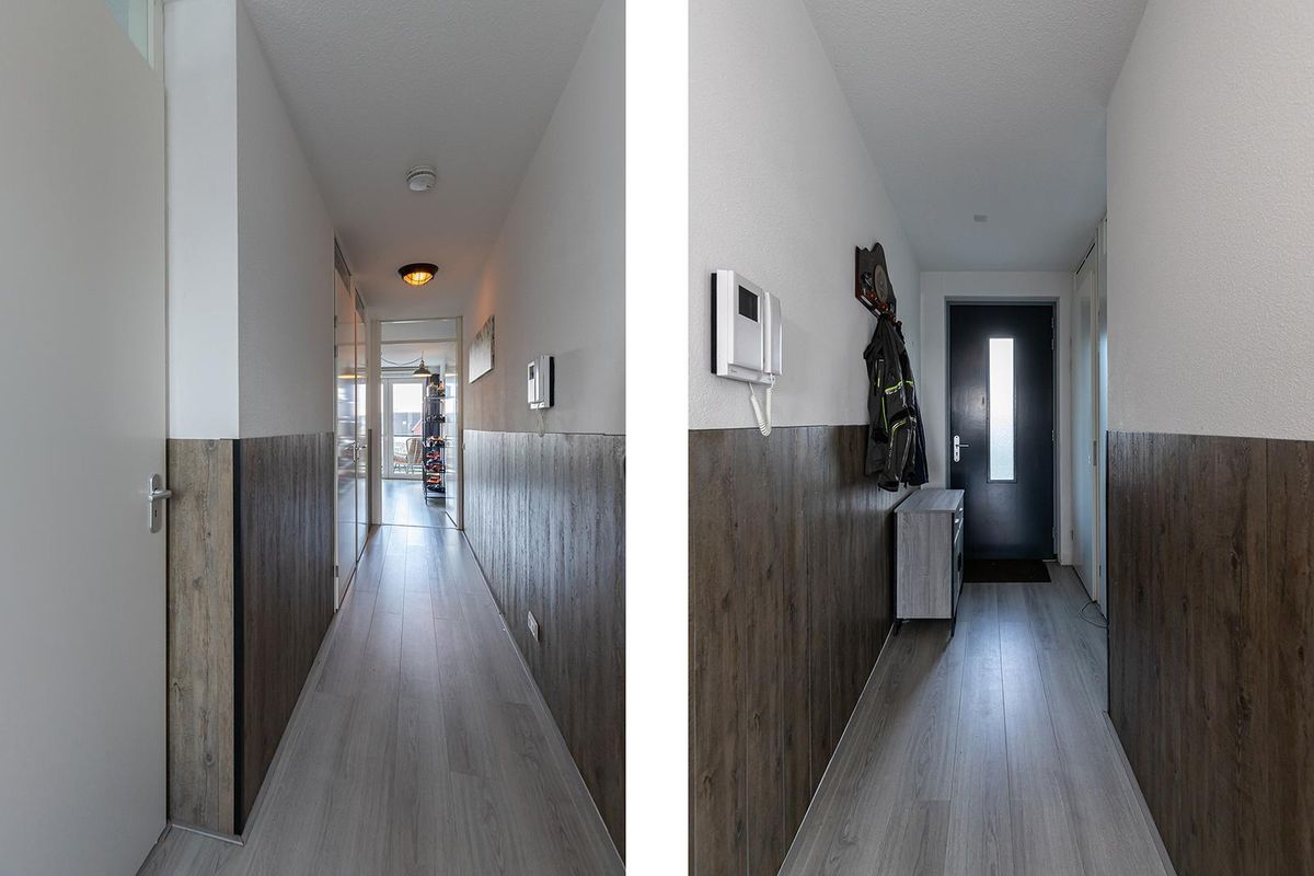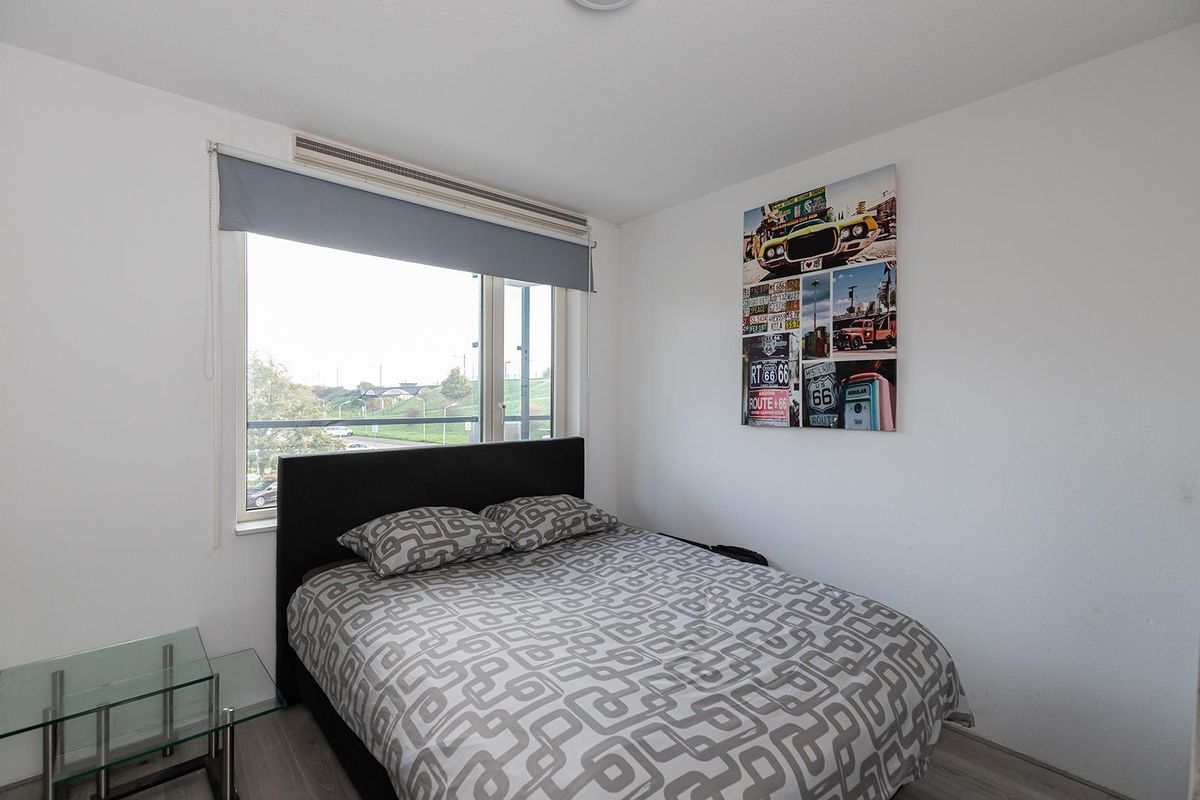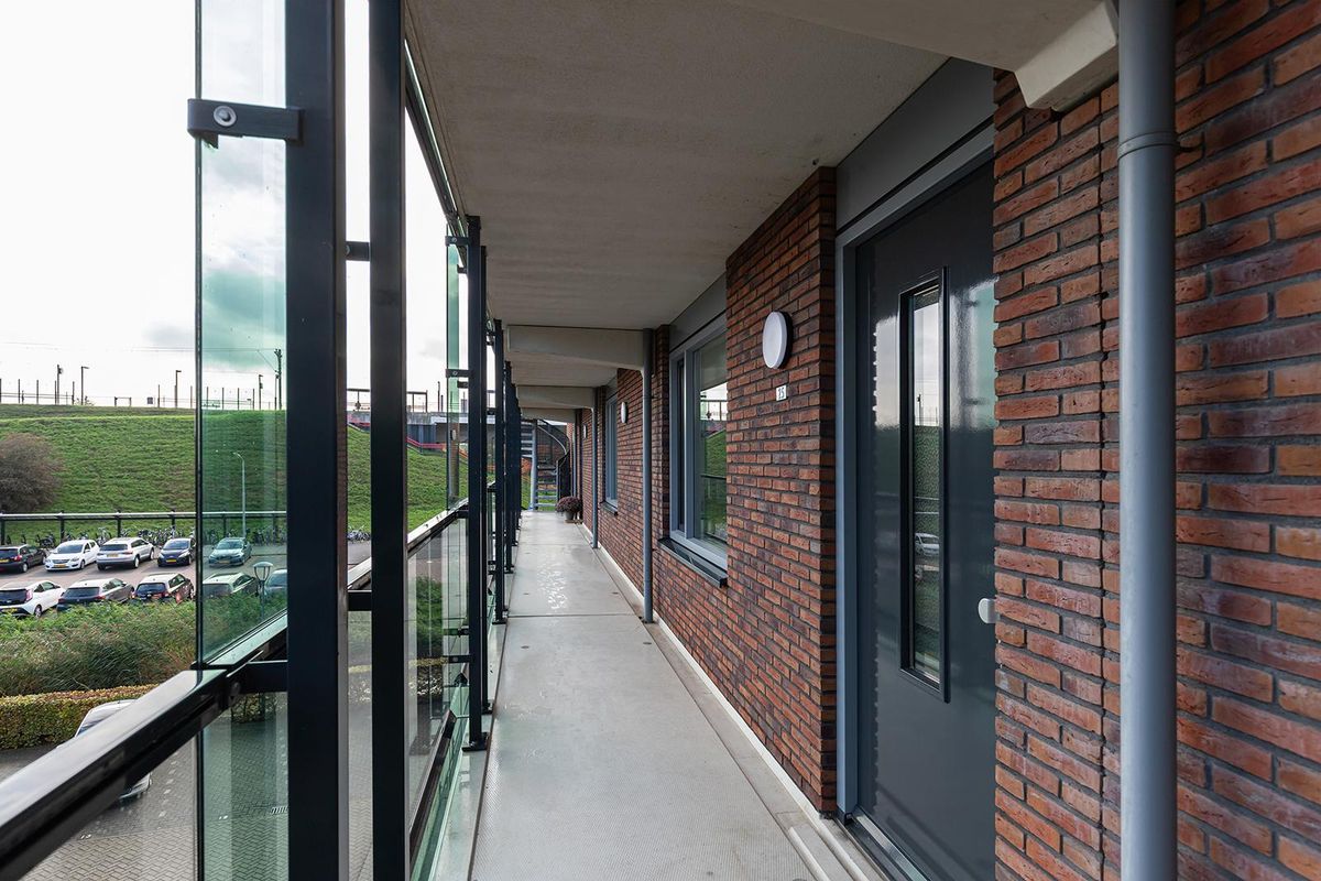 De slaapkamer aan de galerijzijde biedt rust en comfort, terwijl de moderne badkamer is uitgerust met een ruime inloopdouche en een stijlvol badmeubel. Een praktische inpandige berging herbergt de cv-installatie en aansluitingen voor wasapparatuur.