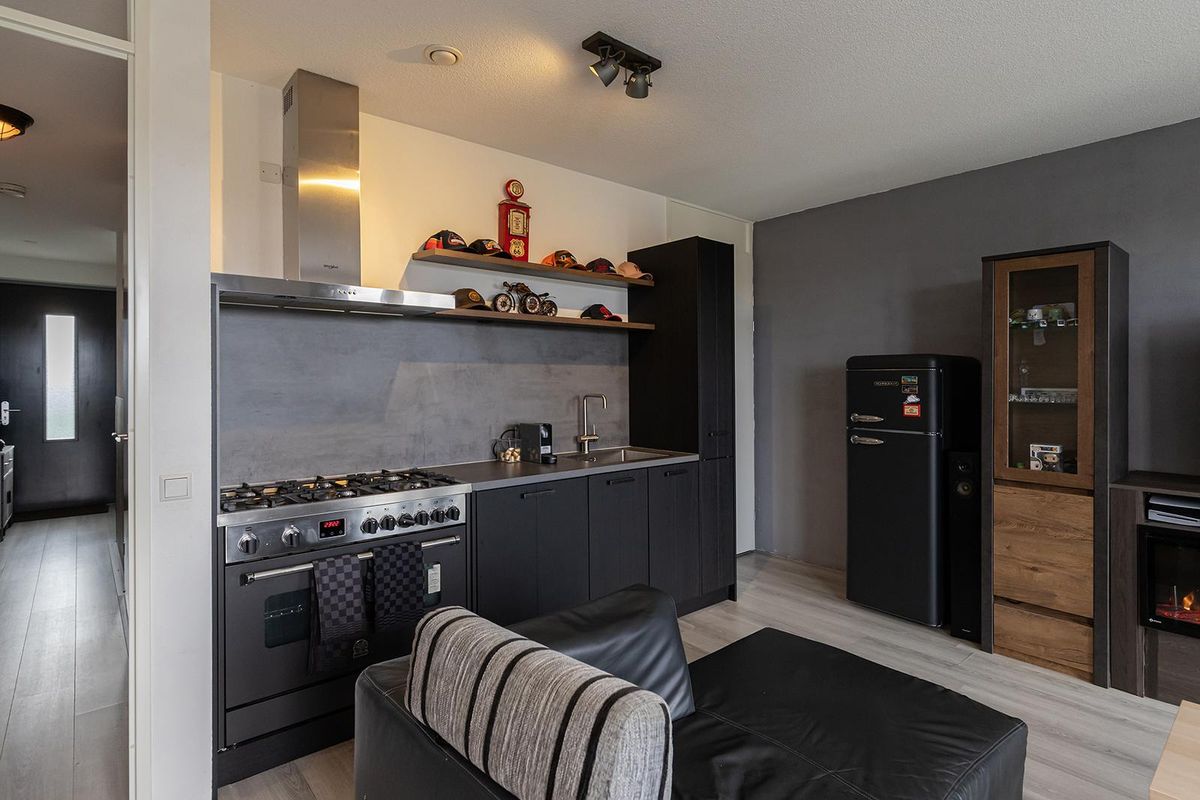 De open keuken is in 2022 vernieuwd en uitgevoerd in stoer antraciet met een bijpassend werkblad. Dankzij het 6-pits gasfornuis met oven, afzuigkap en vaatwasser is dit een keuken die uitnodigt tot koken.