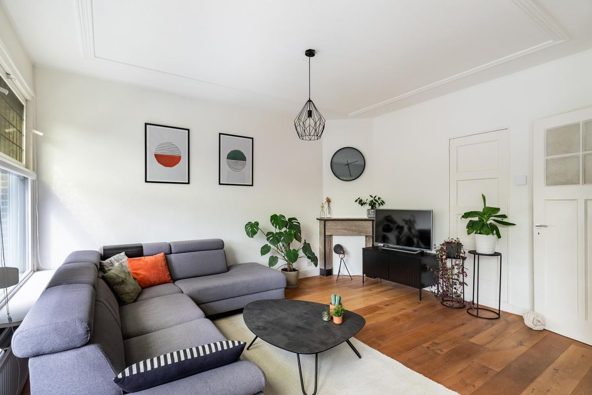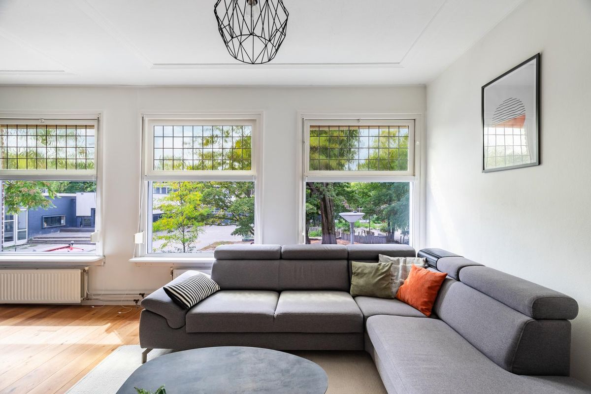 Hal/entree met toilet en een vaste kast. Direct word je overspoeld door talloze jaren '30 details zoals het prachtige glas-in-lood, de plafondlijsten, paneeldeuren en originele schouwen. De woonkamer is een lichte kamer door de grote raampartijen, waardoor er een natuurlijke lichtinval de woning binnentreedt. Er is voldoende plek voor een zit- en eetgedeelte, vanwaar je uitkijkt over de boompartijen aan de voorzijde. Er zijn 2 inbouwkasten, erg handig voor extra opbergruimte. De 1e slaapkamer is gelegen aan de achterzijde en is erg ruim en licht. Vanuit deze kamer bereik je de badkamer welke beschikt over een ligbad met douche en wastafel met meubel. De moderne keuken (achterzijde) beschikt over een 4-pits gasfornuis, afzuigkap, oven, vaatwasser en koel-/vriescombinatie. Vanuit de keuken is er toegang tot het balkon, gelegen op het oosten. Hier kun je heerlijk met een kop koffie genieten van de ochtendzon.