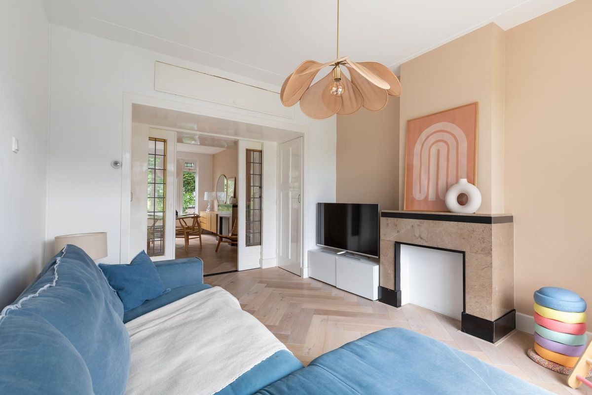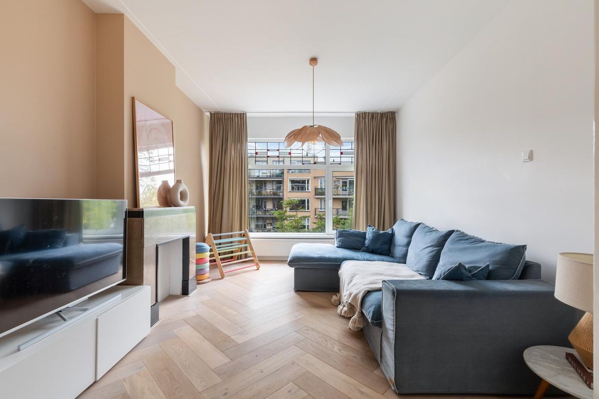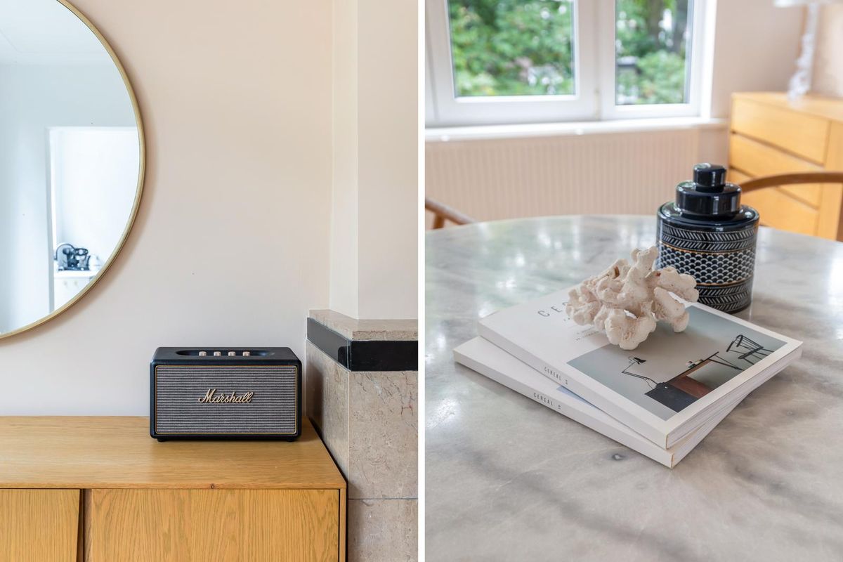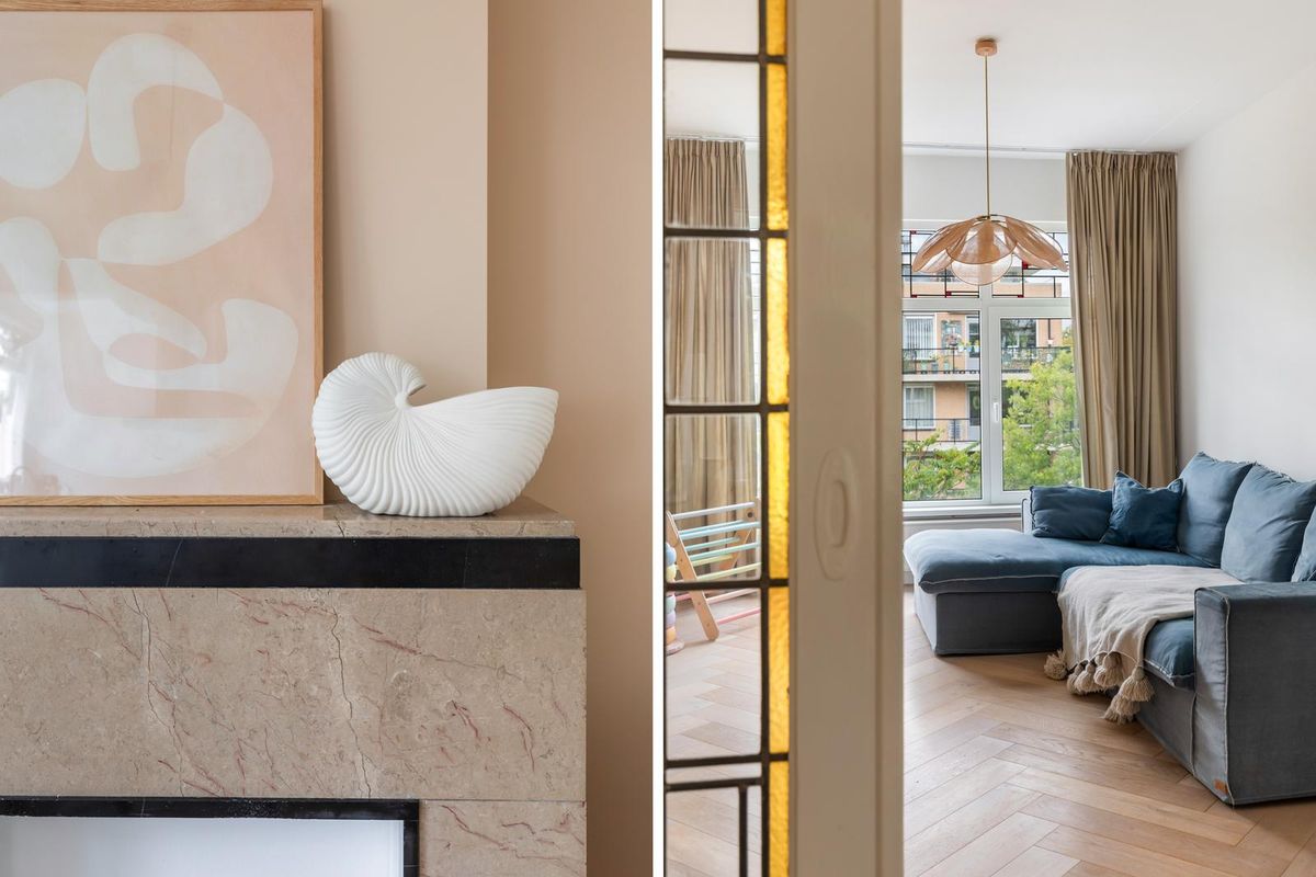 Ruime entree/hal met meterkast, toilet en toegang tot alle vertrekken. De royale en suite woonkamer is met een lengte van ruim 10 meter erg ruim te noemen. Direct wordt je overspoeld met prachtige jaren '30 details zoals het glas-in-lood en de paneeldeuren, wat de woning een zeer authentieke sfeer. Door de grote raampartijen treedt er veel natuurlijk licht de woning binnen, wat zorgt voor een fijne, lichte sfeer. Het woongedeelte wordt gescheiden van de eetkamer middels de en suite, met 3 inbouwkasten. Erg handig voor extra opbergruimte. De eetkamer heeft een directe verbinding met de half open keuken, die is voorzien van diverse inbouwapparatuur, zoals een 5-pits gasfornuis, oven, afzuigkap, vaatwasser en koelkast. De keuken biedt toegang tot het eerste balkon op het oosten. Hier kan je heerlijk van de ochtendzon genieten. De 1e slaapkamer wordt op dit moment gebruikt als inloopkast, maar is multifunctioneel in te richten.
